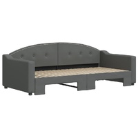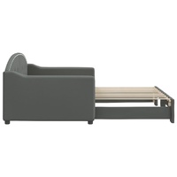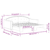 This 2-in-1 daybed with trundle, serving as both a sofa and bed, makes a practical and eye-catching addition to your living room or bedroom. Versatile daybed: The sofa bed functions as a sofa during the day and easily converts into a double bed at night by pulling out the trundle, providing a convenient solution for hosting guests and maximising space. Durable fabric: The guest bed is made of fabric. The fabric features a simple and clean look while remaining breathable and long-lasting. Solid construction: The wooden and metal frame of the sleeper bed ensures sturdiness and stability. Good to know:Mattresses are not included with this daybed. We do offer a various selection of mattresses. You can check our shop for matching mattresses.