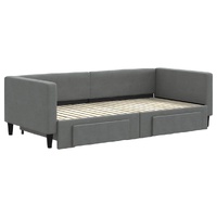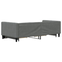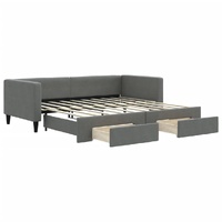 This 2-in-1 daybed with trundle, serving as both a sofa and bed, makes a practical and eye-catching addition to your living room or bedroom. Versatile daybed: The sofa bed functions as a sofa during the day and easily converts into a double bed at night by pulling out the trundle, providing a convenient solution for hosting guests and maximising space. Ample storage space: This guest bed has two drawers with wheels that provide ample space for storing your clothes, socks, toys, cushions, etc. Durable fabric and solid construction: This day bed sofa has a sturdy frame made of wood and metal and is upholstered in durable and comfortable fabric. Good to know:Mattresses are not included with this daybed. We do offer a various selection of mattresses. You can check our shop for matching mattresses.