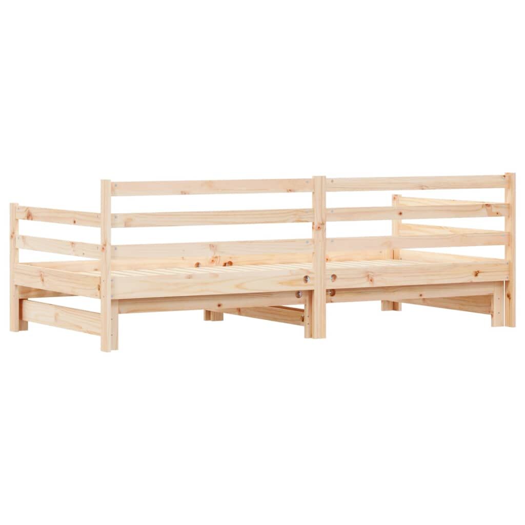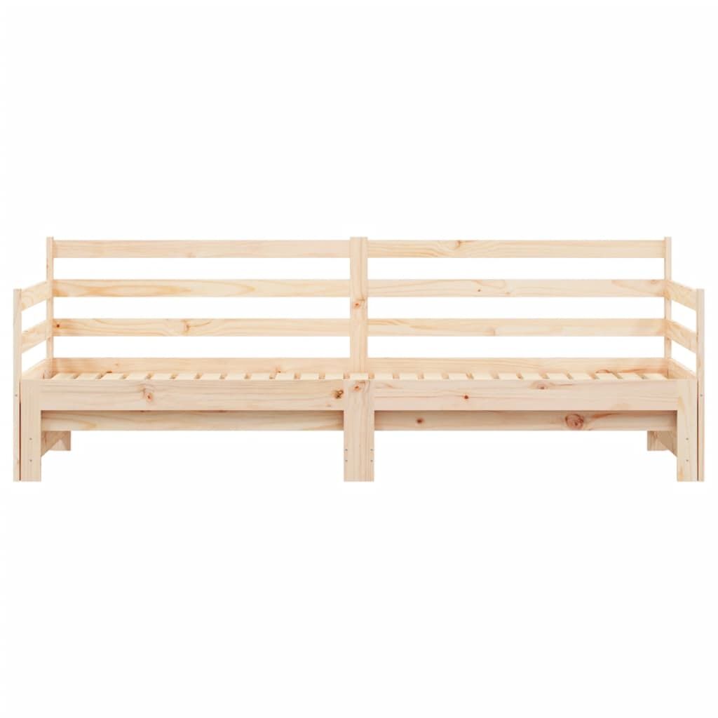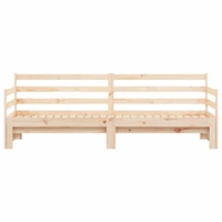 This 2-in-1 daybed with trundle, serving as both a sofa and bed, makes a practical and eye-catching addition to your living room or bedroom. Solid pinewood: Solid pine wood is a beautiful natural material. Pine wood has a straight grain, and the knots give the material its signature, rustic look. The guest bed is made of solid pine wood for stability and durability.Versatile daybed: The sofa bed functions as a sofa during the day and easily converts into a double bed at night by pulling out the trundle, providing a convenient solution for hosting guests and maximising space.Extra storage space: There is extra space under the daybed, allowing you to put drawers or storage boxes for storing your clothes, socks, toys, cushions, etc. Good to know:The delivery contains a daybed frame only. The mattresses are not included. You can check our shop for the matching mattresses.