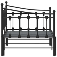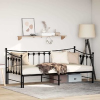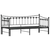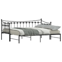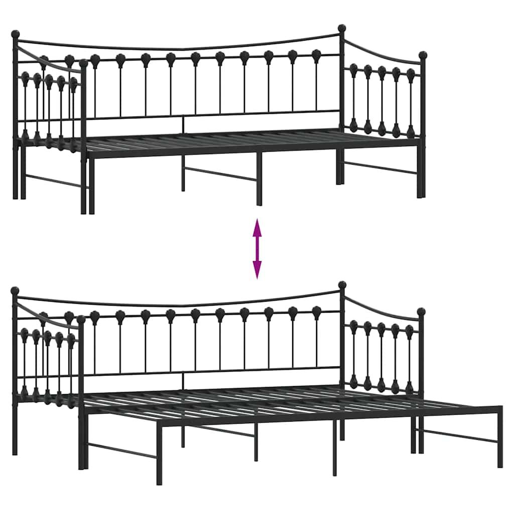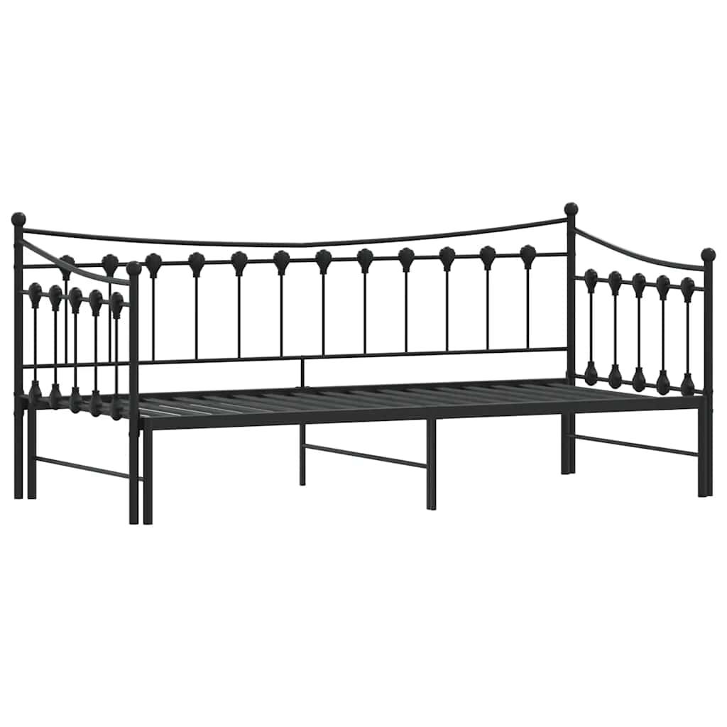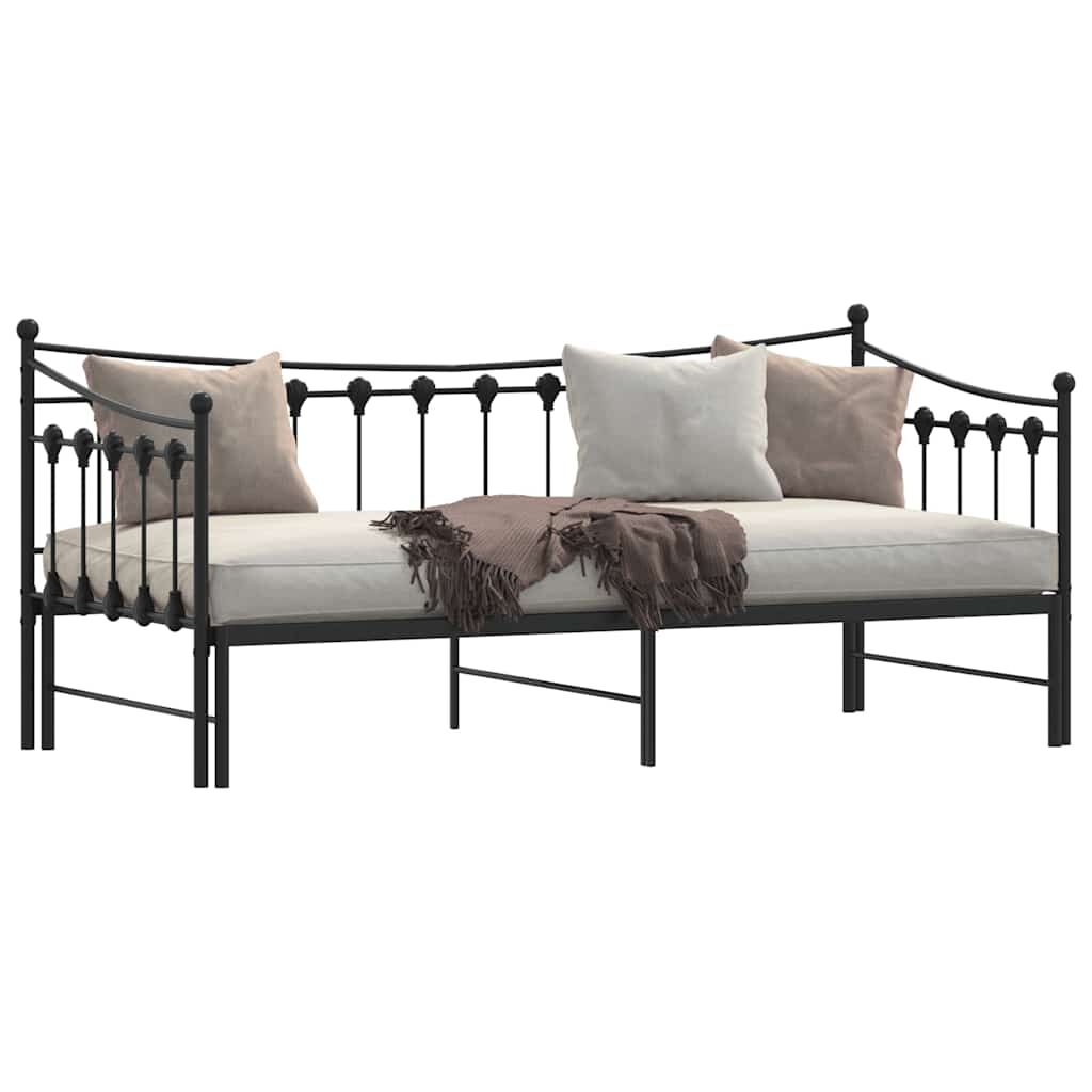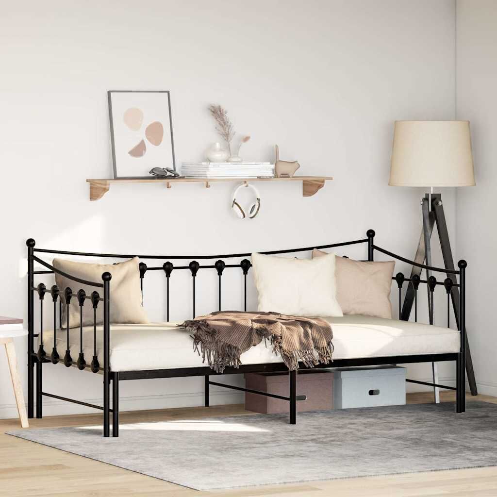 This 2-in-1 daybed with trundle, serving as both a sofa and bed, makes a practical and eye-catching addition to your living room or bedroom. Stable and long-lasting frame: The powder-coated metal frame is strong, stable, durable, and resistant to corrosion and harsh weather, ensuring long-lasting performance.Versatile daybed: The sofa bed functions as a sofa during the day and easily converts into a double bed at night by pulling out the trundle, providing a convenient solution for hosting guests and maximising space.Slatted base for optimal support: The bed frame is equipped with a slatted base for support and breathability for your mattress.Extra storage space: For convenience, the bed has an extra space underneath to keep your storage boxes out of sight. Good to know:A mattress is not included with this bed. We do offer a various selection of mattresses. You can check our shop for a matching mattress.