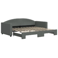 This 2-in-1 daybed with trundle, serving as both a sofa and bed, makes a practical and eye-catching addition to your living room or bedroom. Versatile daybed: The sofa bed functions as a sofa during the day and easily converts into a double bed at night by pulling out the trundle, providing a convenient solution for hosting guests and maximising space.Durable fabric and solid construction: This day bed sofa has a sturdy frame made of wood and metal and is upholstered in durable and comfortable fabric.Modern design: The couch bed has a modern design that features clean lines, a minimalistic look, as well as natural light, and will add a modern style to your interior! Good to know:Mattresses are not included with this bed. We do offer a various selection of mattresses. You can check our shop for matching mattresses.