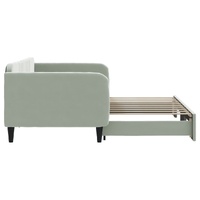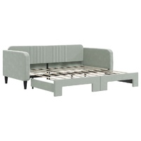 This 2-in-1 daybed with trundle, serving as both a sofa and bed, makes a practical and eye-catching addition to your living room or bedroom. Versatile daybed: The sofa bed functions as a sofa during the day and easily converts into a double bed at night by pulling out the trundle, providing a convenient solution for hosting guests and maximising space.Soft velvet and solid construction: This day bed sofa has a sturdy frame made of wood and metal and is upholstered in soft and comfortable velvet.Modern design: The couch bed has a modern design that features clean lines, a minimalistic look, as well as natural light, and will add a modern style to your interior! Good to know:Mattresses are not included with this bed. We do offer a various selection of mattresses. You can check our shop for matching mattresses.