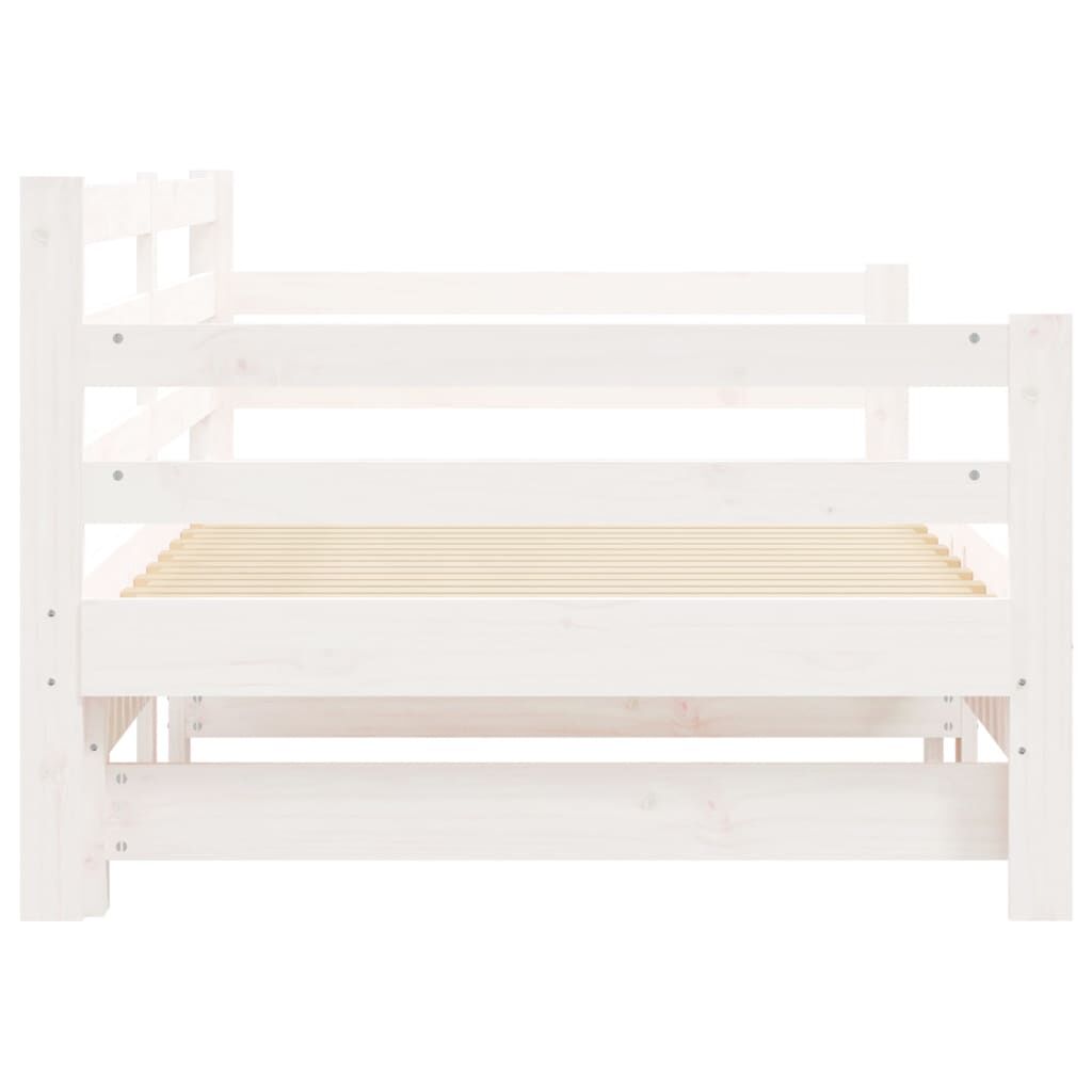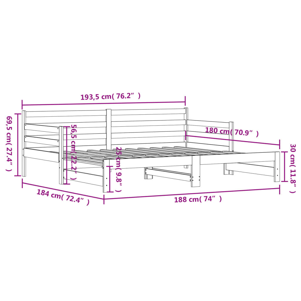 This 2-in-1 daybed with trundle, serving as both a sofa and bed, makes a practical and eye-catching addition to your living room or bedroom. Solid pinewood: Solid pine wood is a beautiful natural material. Pine wood has a straight grain, and the knots give the material its signature, rustic look. The guest bed is made of solid pine wood for stability and durability.Versatile daybed: The sofa bed functions as a sofa during the day and easily converts into a double bed at night by pulling out the trundle, providing a convenient solution for hosting guests and maximising space.Extra storage space: There is extra space under the daybed, allowing you to put drawers or storage boxes for storing your clothes, socks, toys, cushions, etc. Good to know:The delivery contains a daybed frame only. The mattresses are not included. You can check our shop for the matching mattresses.