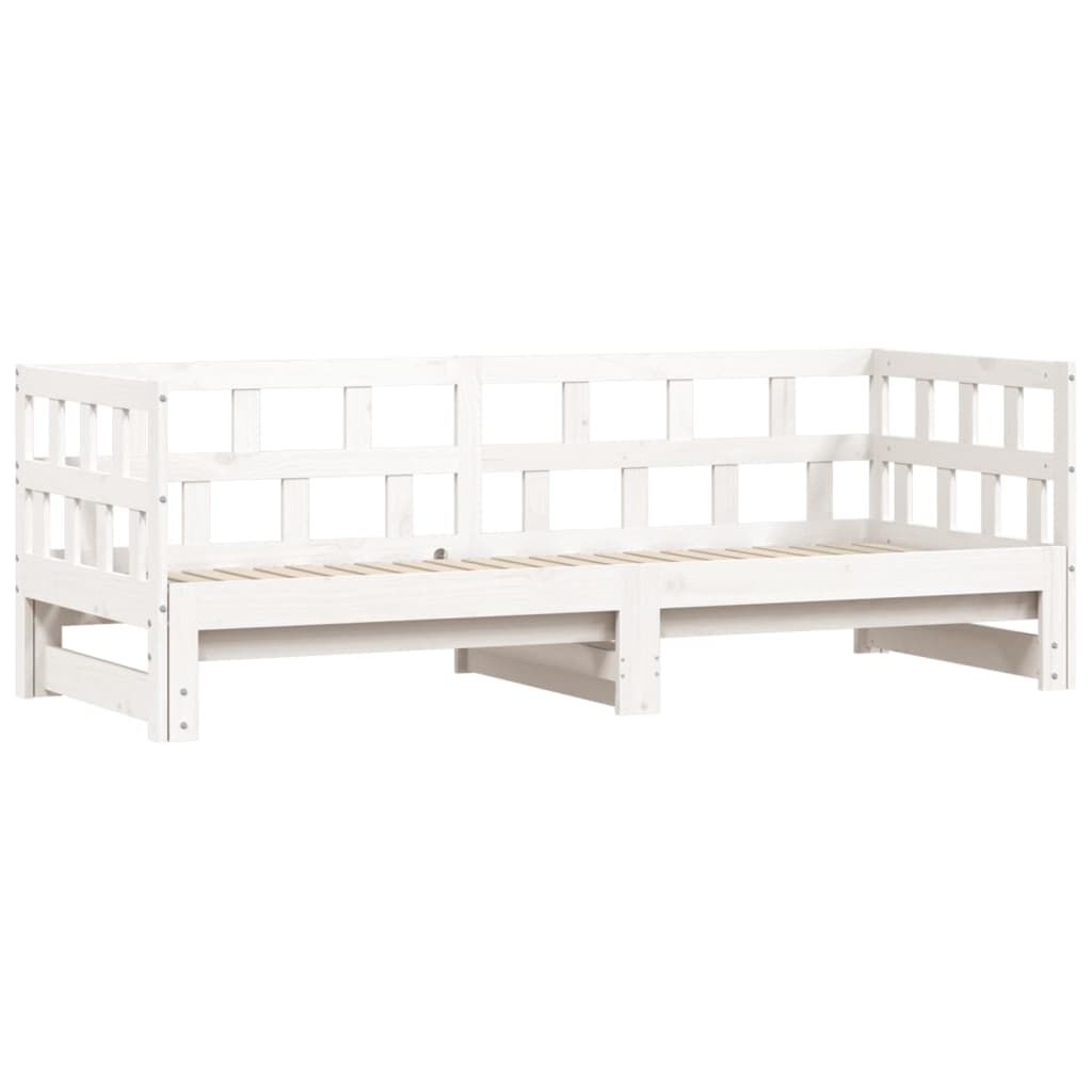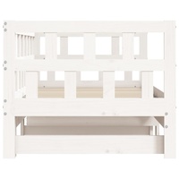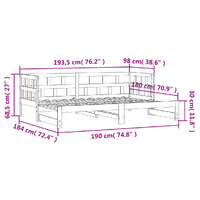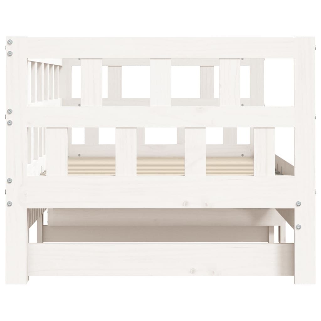This 2-in-1 daybed with trundle, serving as both a sofa and bed, makes a practical and eye-catching addition to your living room or bedroom. Solid pinewood: Solid pine wood is a beautiful natural material. Pine wood has a straight grain, and the knots give the material its signature, rustic look. The guest bed is made of solid pine wood for stability and durability.Versatile daybed: The sofa bed functions as a sofa during the day and easily converts into a double bed at night by pulling out the trundle, providing a convenient solution for hosting guests and maximising space.Extra storage space: There is extra space under the daybed, allowing you to put drawers or storage boxes for storing your clothes, socks, toys, cushions, etc. Good to know:The delivery includes a daybed frame only. The mattress is not included. You can check our shop for the matching mattresses.