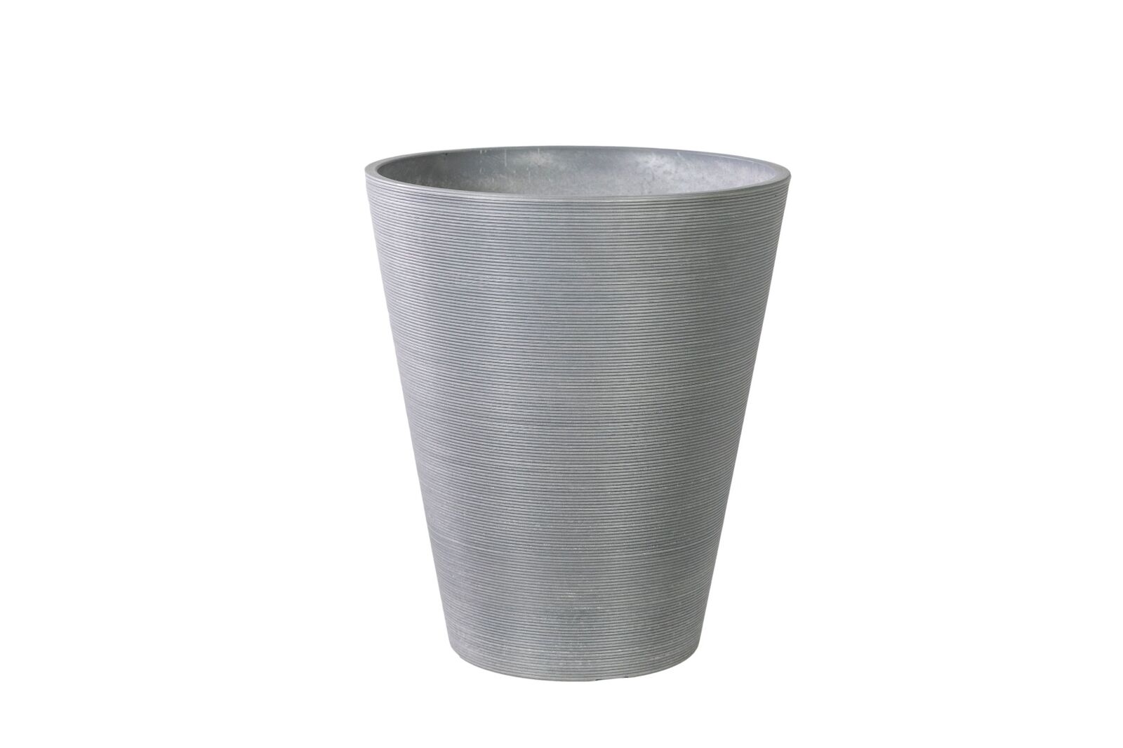 This tapered grey planter is made from exceptionally high-quality recycled materials that exceed the performance of most traditional pots and planters. The environmentally friendly round planter is the perfect choice for anybody wanting a low-maintenance planter for either indoors or outdoors that will last for years. Finished with a simply stunning textured lined surface you'll absolutely love this super planter. There is a hole with a plug in the base to allow for drainage should you require.