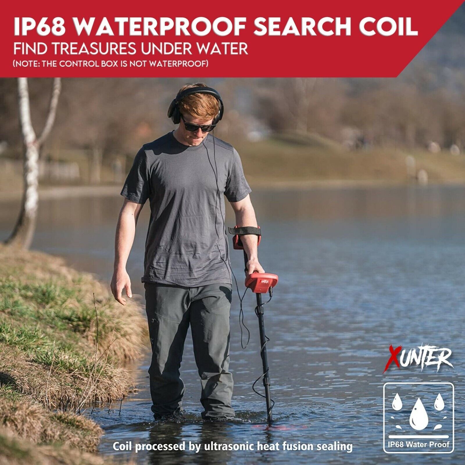 【10inch Waterproof Search Coil】 Xunter IP68 metal detector can work well in shallow water. Perfect for beach, stream, and during rainy days and find treasures hidden from the eyes of the majority. Metal detectors can be easily cleaned and saved. (Note: the control box is not waterproof)