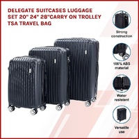 $291.39If travel is in your plans, don't leave home without this gorgeous three-piece set of luggage by Delegate. Featuring secured TSA-approved locks on the two larger bags, this set of trolley bags comes in three sizes: 20 inches, 24 inches, and 28 inches. With a soft inner mesh lining and a cross-strap to secure your belongings, your clothing, shoes, and cosmetics will be in good hands. On the outside, corner guard protectors, as well as side and top handles, keep it safe and convenient, even in the hands of rough baggage handlers.
