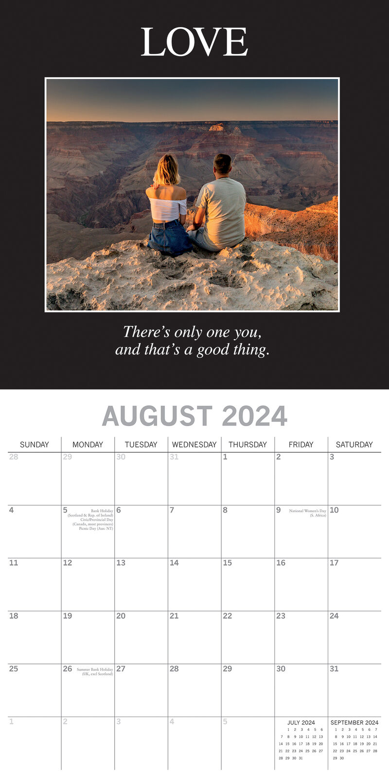 Brand New Calendar with Beautifully design, Sealed in Original Packaging, each calendar includes a large grid running from Sunday to Saturday. Publisher: The Gifted Stationery Co. Dimensions: 30cm (w) x 30cm (h) closed; 30cm (w) x 60cm (h) opened Time Span: 16 months (January to December 2024 monthly, September to December 2023 on-a-page) 2024 Square Wall Calendar featuring beautiful colour photographed images for every month of the year. Like most Wall calendars, this one comes with: