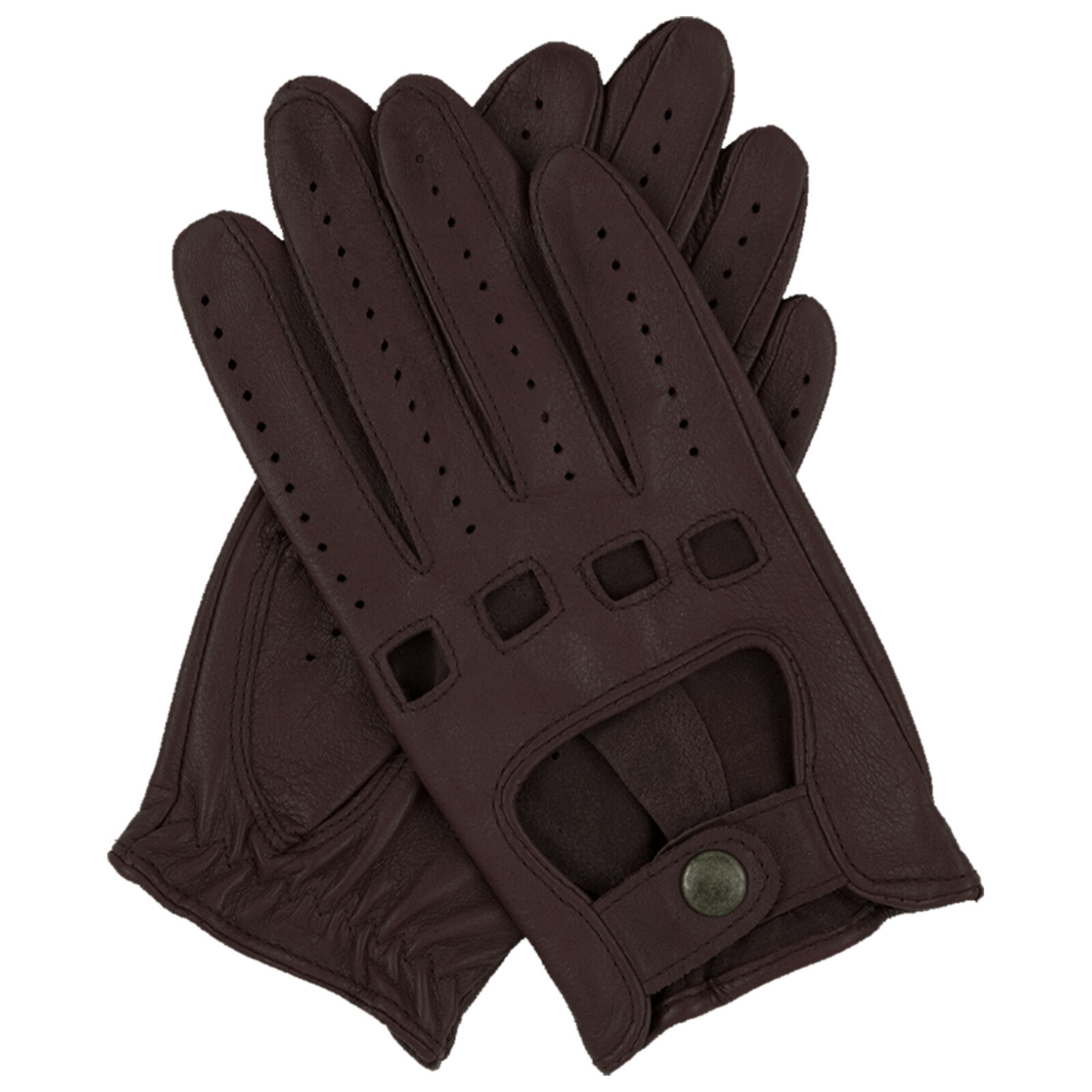 Ladies unlined Australian Kangaroo leather driving gloves with knuckle and key hole cut outs. These gloves feature an inside elastic and snap button clasp on the back of the wrist. Kangaroo leather is known for being one of the strongest available leathers,all while maintaining its softness and beauty.