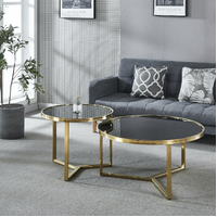 $478.45Classic yet Luxuriouswith a Mid-Century Modern design and stylish chic appeal, theGiselle Coffee Table Set makes a statement.Featuring an elegant brushedgold finishand sleek black glass top.