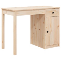 This stylish wooden desk, featuring a simple and practical design, is definitely meant to be the focal point of your room. Solid pine wood: Solid pine wood is a beautiful natural material. Pine wood has a straight grain, and the knots give the material its signature, rustic look. This office desk is made of solid wood for extra sturdiness and durability.Ample storage space: The study desk has 1 drawer and 1 cabinet, providing storage space for you to keep books, files or other essentials within reach.Spacious desktop: The desktop is ideal for placing your computer, keyboard and mouse or notebook to write or read comfortably.Wide applications: This standing desk can be used as a computer desk, writing desk and working table. It is suitable for study, office and any space decoration styles. Warning:In order to prevent overturning, this product must be used with the wall attachment device provided. Note:Each product comes with an assembly manual in the box for easy assembly.