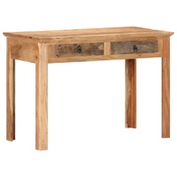 The classic wooden desk exudes a vintage charm and makes a distinctive addition to your home or office. The writing desk is handmade from solid reclaimed wood, which means every piece of furniture is unique and slightly different from the next. Reclaimed wood is solid, stable, durable, and beautiful. Signs of wear and visible grain structure give each piece its own history and a distinctive look. The solid acacia wood frame offers extra stability for the desk. It features two drawers providing ample storage space to keep your item organised and within reach. It can also be used as a console table, hall table, side table etc. Important note: Colours and grains may vary from piece to piece, making each piece unique. The delivery is random as well.