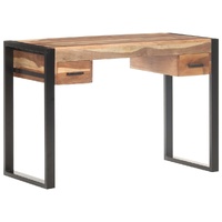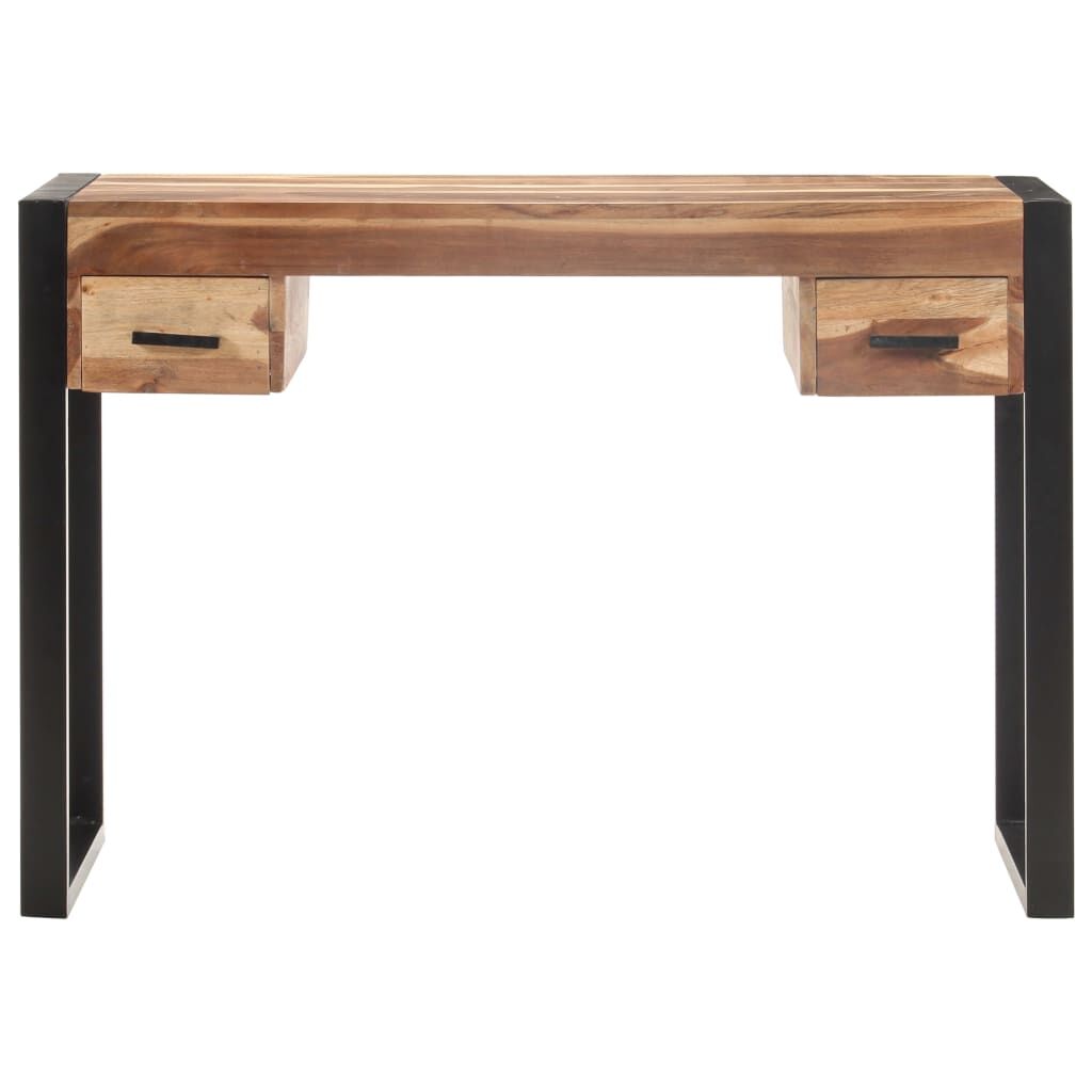 This stylish wooden desk is practical and is meant to be an attractive focal point of your room. This vintage-style desk, made of solid acacia and rubberwood, is a timeless addition to your home. Every step of the process is carried out with the greatest care, be it polishing, painting or lacquering. The desk is sturdy and durable with its strong steel frame. The tabletop provides a stable and secure surface to place your drinks, a fruit basket or vase or other decorative items. It has two drawers that provide ample space for storing small items such as keys and notepads. The desk can be used as a computer table, worktable, office desk, reading table, study table, etc. It can also be used as a sideboard or console table. Important note: Colours vary from piece to piece, making each of our desks unique. The delivery is random, ensuring the exclusivity and individuality of your product.