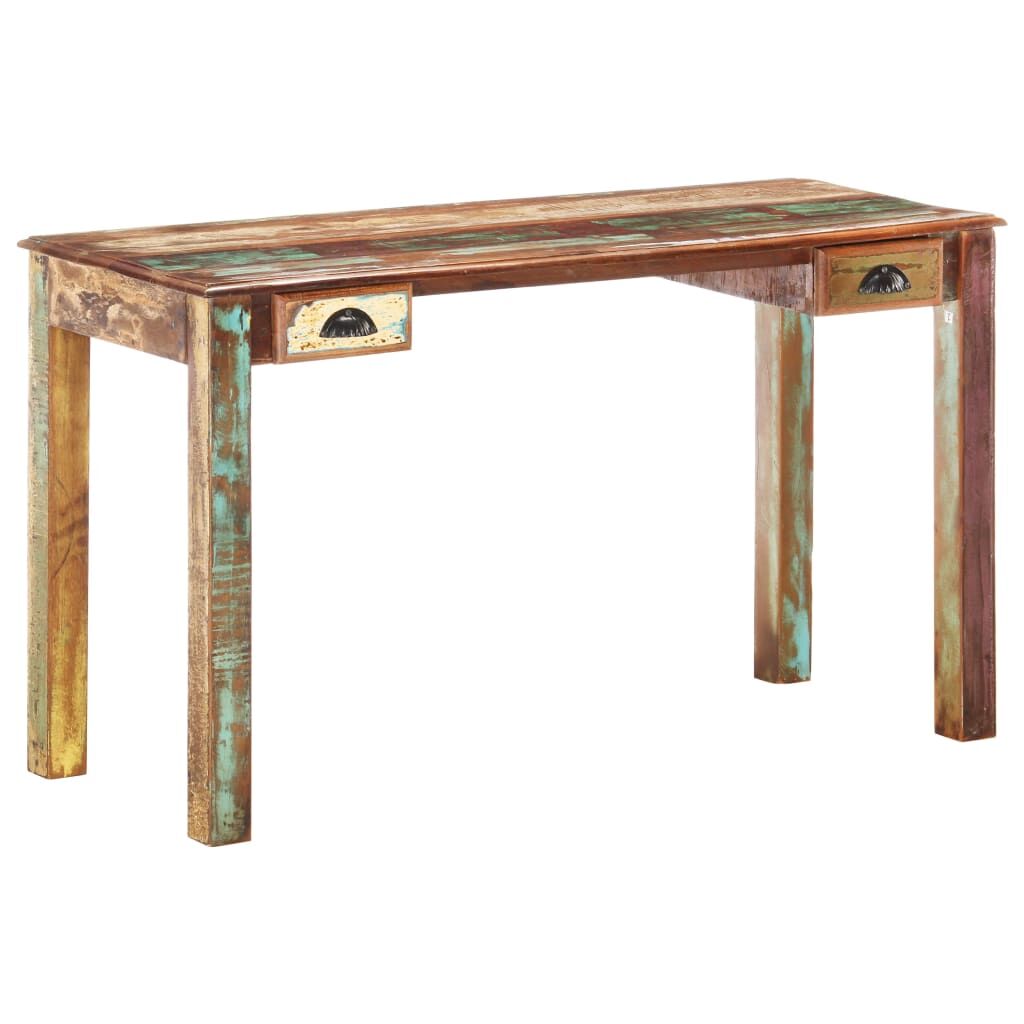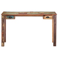 This wooden desk will make a decorative as well as practical addition to your decor. The writing desk is made of solid reclaimed wood, sourced from joists, floors and support beams from demolished old buildings. Additionally, it is capable to consist of different types of wood like teak, hardwood, tropical wood, mango wood, etc. This means the reclaimed wood retains the characteristics of these different types of wood. Reclaimed wood is already aged, weathered and dried. Hence, they don't shrink or bend. The nice-looking wood grains make every piece of furniture distinctive and slightly different from each other. Additionally, the computer desk provides space for storing your books, notepads, pens, as well as other knick-knacks. This study desk is also easy to assemble. Important note: The colour and grains may vary from piece to piece, making each piece unique. The delivery is random as well.