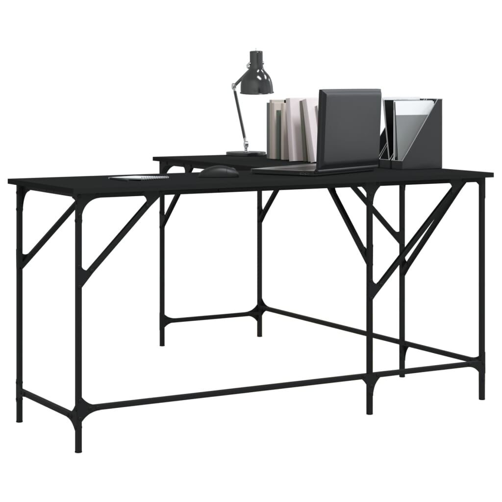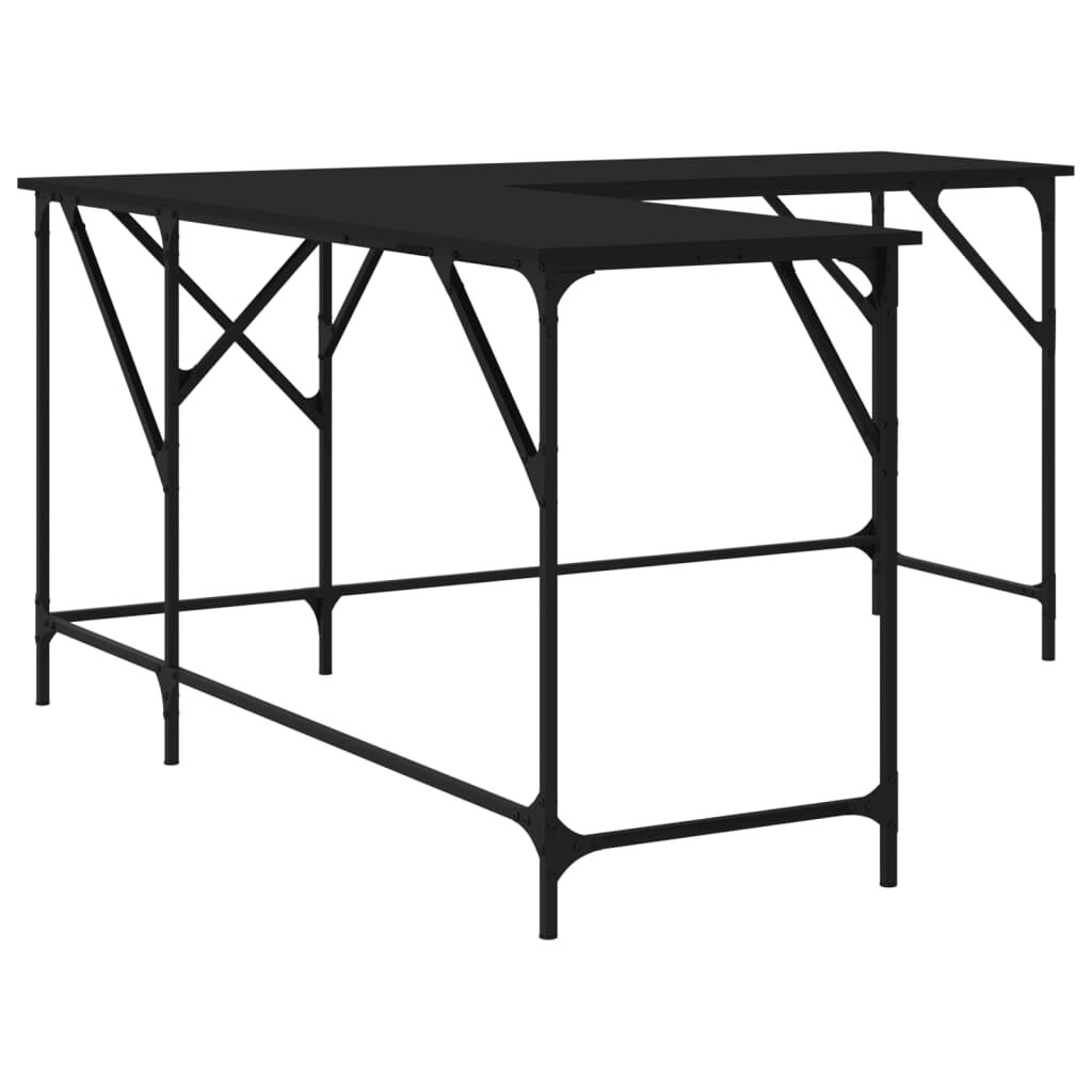 This simplistic desk is meant to be a practical as well as a decorative choice for your living space! Durable material: The engineered wood is of exceptional quality with smooth surface and also features strength, stability and resistance to moisture. Made of engineered wood, the office desk is easy to clean.Spacious tabletop: The spacious tabletop of this computer desk allows you to place your computer, documents, decorations and other essentials.L-shaped design: The writing desk features an L-shaped design, making it easy to fit snugly in any corner to maximise your limited space.Adjustable feet: The adjustable feet with plastic pads keep the standing desk balanced on uneven ground and increase stability.Metal frame: The metal frame adds an industrial style to your interior while ensuring durability and stability. Warning:To prevent it being overturned, this product must be used with the provided wall attachment device.