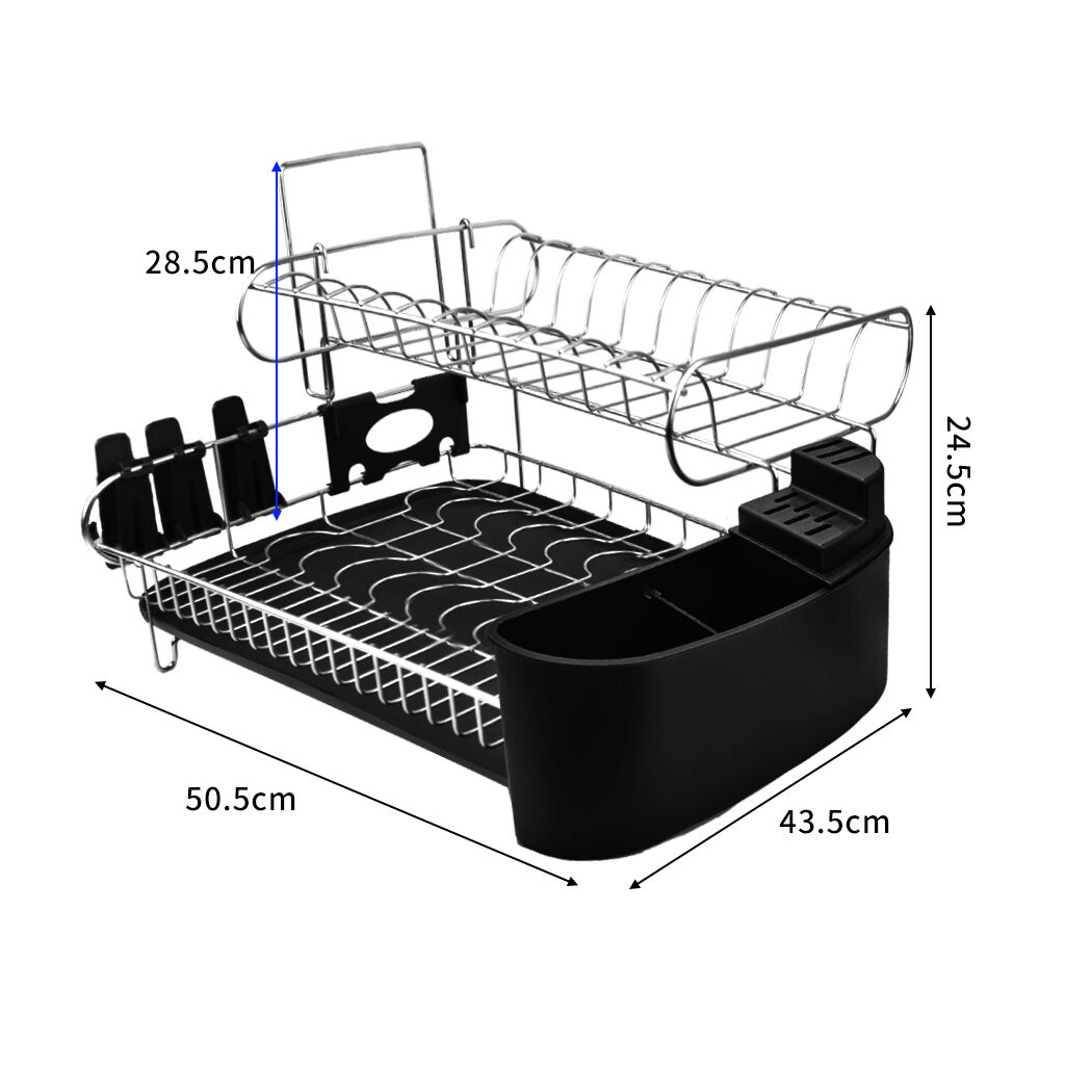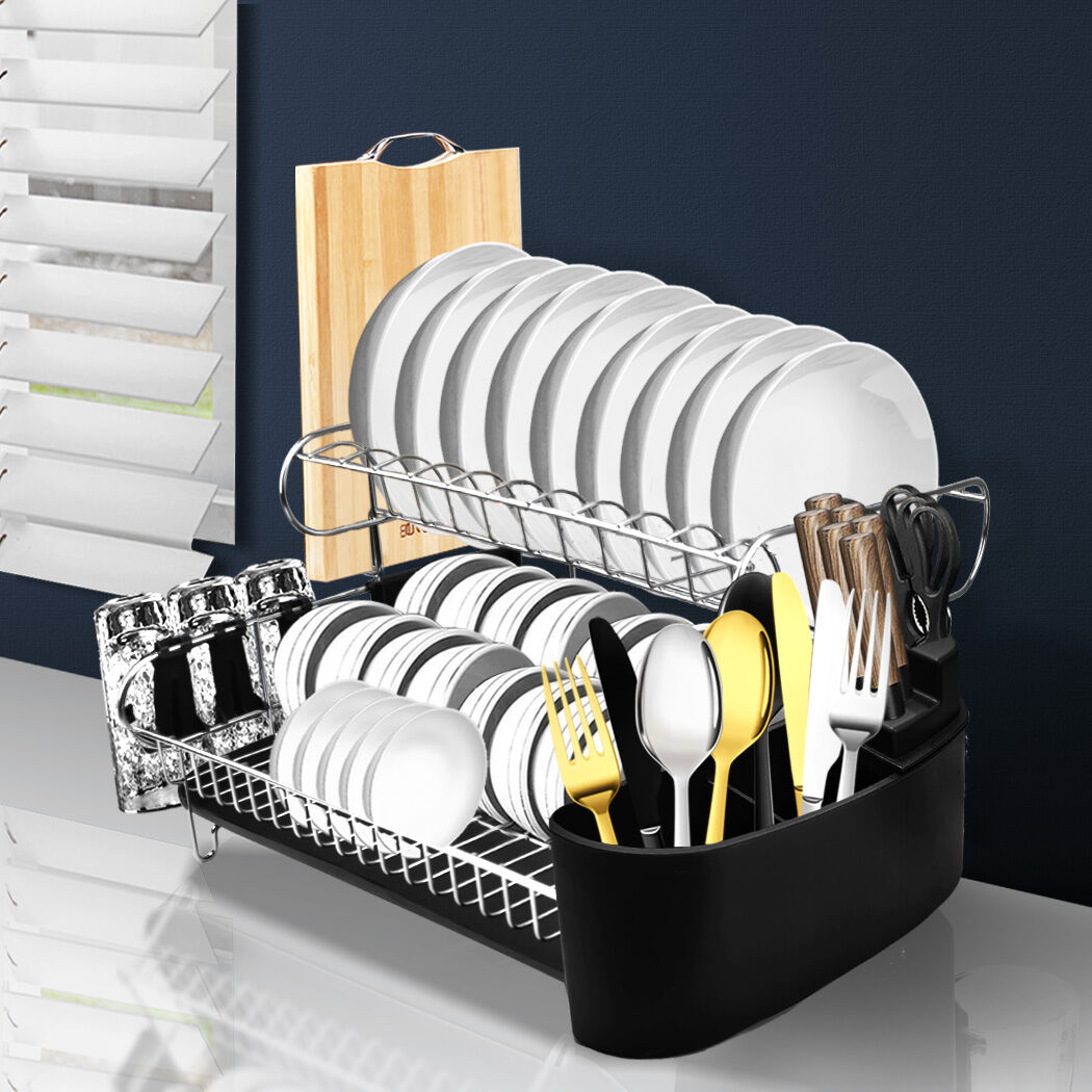 Dry your dishes on your 2-Tier dish rack. Pure luxury. Not only that, there are attachments on the side for cutlery and chopping boards. Great for those with smaller kitchens.
