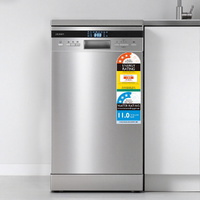 With a large capacity and freestanding design, it's perfect for handling everyday loads of plates, glasses, pots, and pans. The lift-up basket lets you easily adjust rack height to fit tall glasses or large cookware, giving you greater flexibility for every wash. This quiet-operation dishwasher offers 8 cleaning programs, including 24-hour delay start, extra cleaning, and drying functions. The intuitive LED display with clear indicators makes operation simple and hassle-free, while the add-in feature lets you place forgotten dishes mid-cycle.For superior results, it uses a hot water cleaning function, heating cold water directly from the inlet hose for effective cleaning and longer hose durability. Make post-meal clean-up a breeze with the Devanti 10 Place Setting Dishwasher : efficient, flexible, and built to simplify your kitchen routine.
