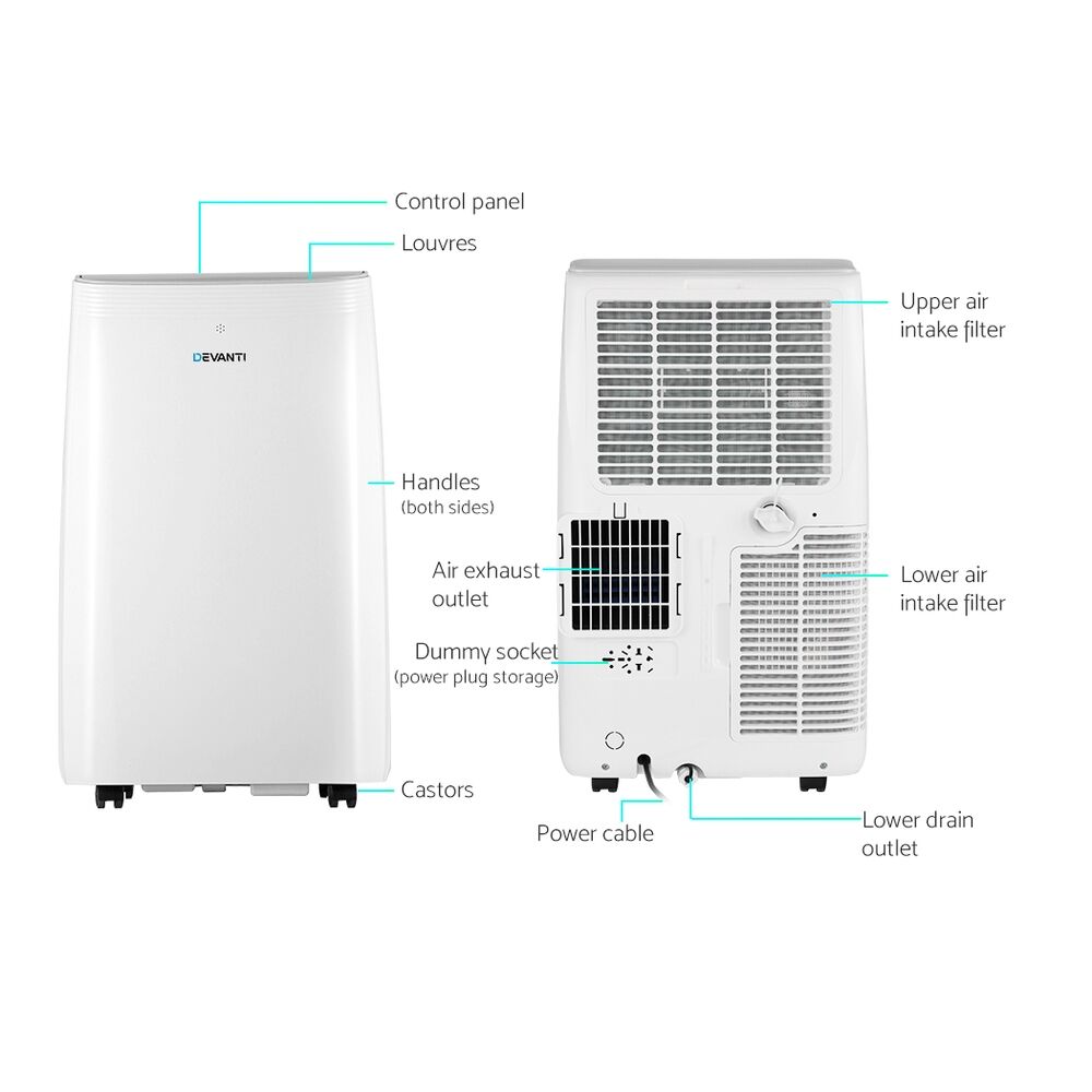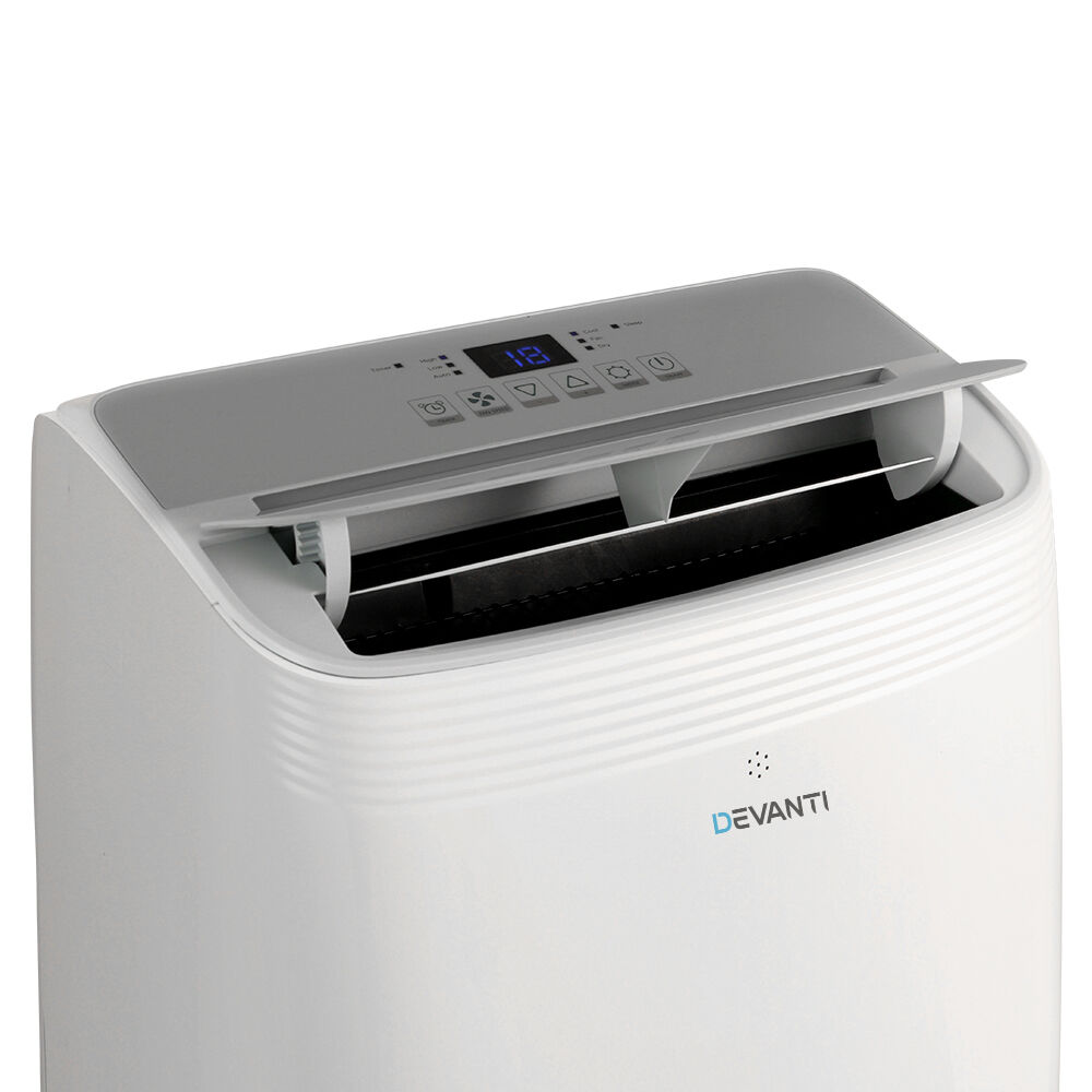 $587.49Hot days are not too far away. So why not pick up our Devanti Portable Air Conditioner to help you stay cool comfortably and economically throughout the season. The air conditioner is three appliances rolled into one: an air conditioner, a 2-speed fan and a dehumidifier. The portable air conditioner uses MIST Evaporative Technology so that you rarely need to empty the water tank ďż˝ simply set and forget. The air conditioner rapidly delivers super-cool breezes throughout rooms sized 20mďż˝ to 30mďż˝ and operates quietly and efficiently. The LCD display allows for a clear glance of all your settings and a handy remote control lets you operate it from anywhere in the room. The air conditioner can also be set to work for a pre-set number of hours with its 24-hour timer. Four castor wheels and built-in handles make the air conditioner very portable so that you can keep cool wherever you are. An included adjustable window exhaust kit enables easy installation of the exhaust hose for hot air to be extracted easily. And when it comes to cleaning, the removable mesh filter allows for hassle-free maintenance. Do not let the heat get you down this summer. Live in a cool and refreshing ambience with a Devanti Portable Air Conditioner.