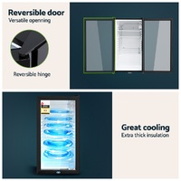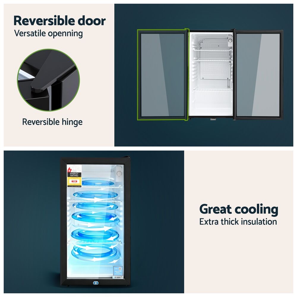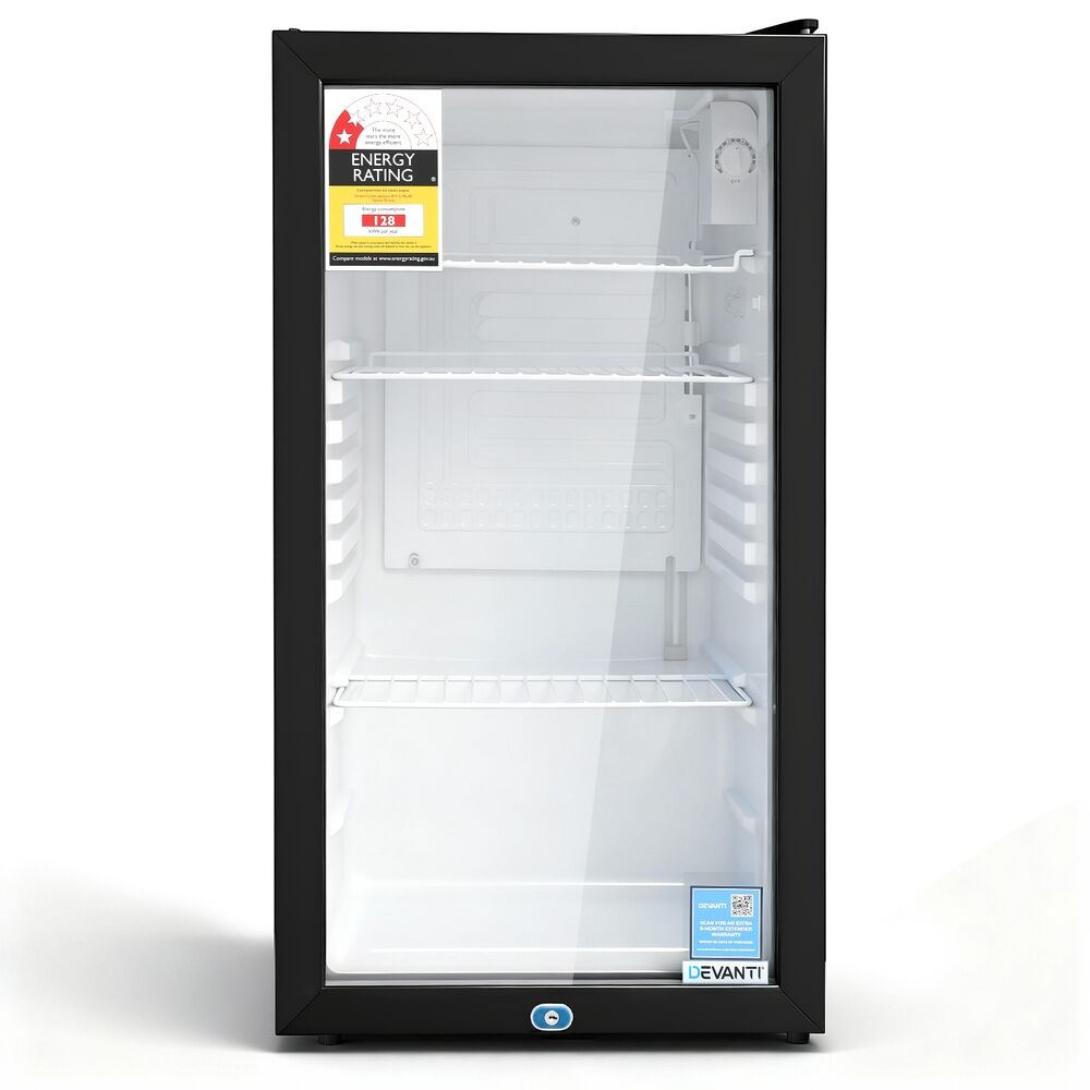 Our portable Devanti Bar Fridge is great for keeping a variety of food and beverages chilled and cooled without taking up too much space. Designed with six temperature settings, the energy-efficient bar fridge lets you set your desired coolness and freshness. Other great features include adjustable shelves, double-glazed door, height-adjustable feet, built-in handle and consistent refrigeration to name a few. The compact bar fridge is well-made for robust use, such as the extra thick insulation and a built-in LED lamp to ensure operation is smooth, quiet and hassle-free. The fridge also comes with a built-in lock to keep the contents safe and secure, especially useful in a retail environment after you close for the night. Suitable for both domestic and commercial use, the Devanti bar fridge is a cool investment time and again.