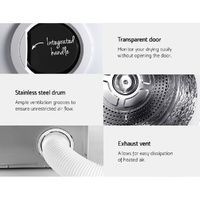 $433.79All-weather drying comes easy with the fully-automatic 7kg load capacity Devanti Tumble Dryer. No more worries about damp or half-dried clothes as the dryer does an ideal job of delivering perfectly dried and fresher laundry everytime. It has a simple digital control panel that is easy and intuitive to use. Together with the standard drying mode, the dryer also features a cool air-dry function that is great for airing dry cleaned clothes or clothes in long storage. A delicates mode ensures all your delicates are also gently handles in the drying department. Better still, the dryer is equipped with an intelligent humidity sensor that can detect moisture in your laundry. This will save you not only running time by adjusting drying duration but also energy costs in the long run. Other great features include an anti-crease function, 12-hour delay start and an easy-access filter for cleaning conveniently before each use.