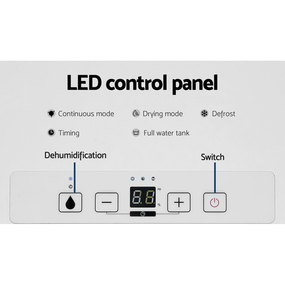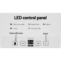$169.19Do you feel trapped and stuffy at home? Do you have trouble with mould and mildew? The problem may be your air quality. Let our Devanti Dehumidifier rid you of strong odours, dust and high humidity in your home. The 2-in-1 device acts as both a dehumidifier and an air purifier to eliminate VOCs and other unwanted particles in the air. A washable air filter allows you to effectively filter every time without having to change parts. With its efficient compressor, you can eliminate 12L of water per day without overspending on electricity. With a 24-hour timer, you can set and forget as your device automatically cleans your air quietly and efficiently. The handy LED screen will always keep you informed. Drain the recaptured water into the 2.1L water tank or drain it where it needs to go with the included 30cm water pipe. Finally, the entire device is set on smooth castor wheels and features a convenient handle for portability. Stop suffering and start breathing easy again with a Devanti Dehumidifier.