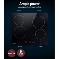 $223.71For amazing, hassle-free cooking in your new or existing kitchen, the Devanti 60cm Ceramic Cooktop is just what you need. With its sleek high-grade black ceramic glass plate, the cooktop suits many modern and contemporary decor styles and will fit easily into any kitchen. The cooktop has chef-friendly features such as high-wattage cooking zones, a simple and smart touch control panel, overheat protection and efficient heat dissipation, and a 99-minute timer. It features 4 cooking zones with 9 power levels to choose from to prepare that perfect dish. The residual heat indicator lets you know when it is safe to touch the cooktop after turning the hot plates off, and a child safety lock keeps your family safe from accidents. Powerful and yet integrally safe, the cooktop promises many moments of hassle-free delicious cooking with the right blend of sophistication and class for your kitchen.