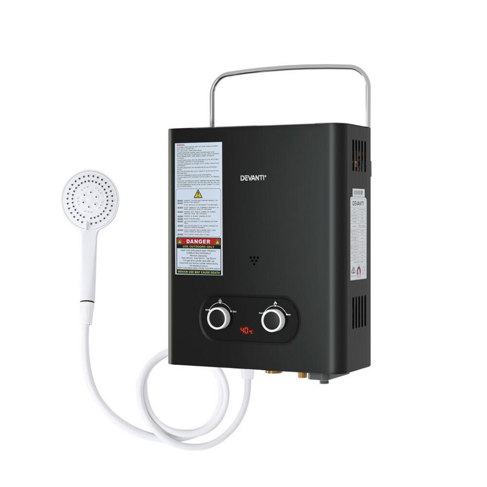 $196.19Experience the luxury of a warm shower in the great outdoors with the Devanti Gas Water Heater. This versatile and efficient outdoor showering solution offers convenience, clearly displayed on its LED screen. Safety is paramount, with a built-in processor limiting the maximum water temperature to 60�C, to help preventing any accidents. The showerhead features an automatic on/off trigger for easy operation, while a variety of additional safety features ensure worry-free use. Designed for portability and ease of use, the Devanti Gas Water Heater comes equipped with a handy carry handle and all necessary mounting brackets for quick and hassle-free setup. Its lightweight construction makes it ideal for camping trips, beach outings, or any outdoor adventure where a warm shower is desired. With both winter and summer settings and adjustable water flow this LPG-powered heater offers a perfect blend of comfort and practicality for outdoor enthusiasts. Enjoy the freedom of the open country without sacrificing the comfort of a warm shower � the Devanti Gas Water Heater is your perfect outdoor companion.