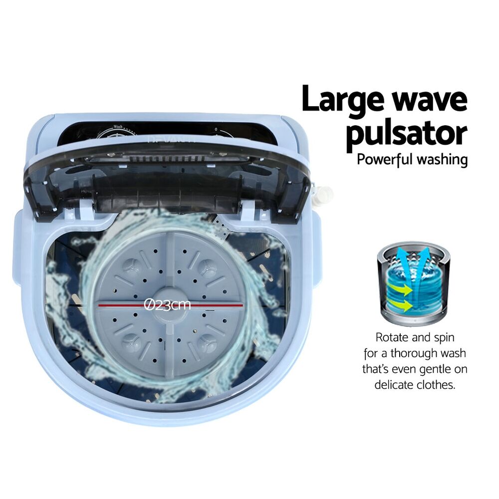 $111.85Need to a better way to wash your clothes while on road trips and out camping? Then our Devanti Portable Washing Machine is just the thing for you. Featuring a lightweight 2-in-1 wash and spin dry design, the washing machine has a powerful wave pulsator that washes and cleans with purpose. It is easy to use with simple rotary knobs for wash and spin-dry functions as well as 15-minute timer control. And no worries too about washing delicate clothes as this machine is gentle on all fabrics with its intelligent wash cycles. Best of all, the washing machine comes included with a shoe brush for you to wash up to four pairs of shoes at once. With a capacity to handle up to a 3kg laundry load, our practical portable washing machine also features a detachable spin basket, built-in handles, reliable copper-wire motor and not least, a quiet and efficient operation at all times.