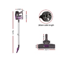 For the ultimate in easy vacuuming, our Devanti Handstick Vacuum Cleaner always makes for efficient cleaning. The powerful 500W 33,000rpm motorised head has steady suction power for a thorough clean. Its pivoting head tilts and swivels, and the included 2-in-1 brush and crevice nozzle can be fitted for any surface or space. Its cable design allows you to vacuum continuously. The generous 3.8m cable lets you reach every corner and you can convert to handheld mode within seconds. All collected dirt and debris pass through a washable and reusable HEPA filter that eliminates up to 99.97% of dust and allergens. Other features include an extendable handle and a one-click design to empty the dust container. Join the cleaning revolution and enjoy hassle-free vacuuming with a Devanti Handheld Vacuum Cleaner.