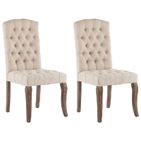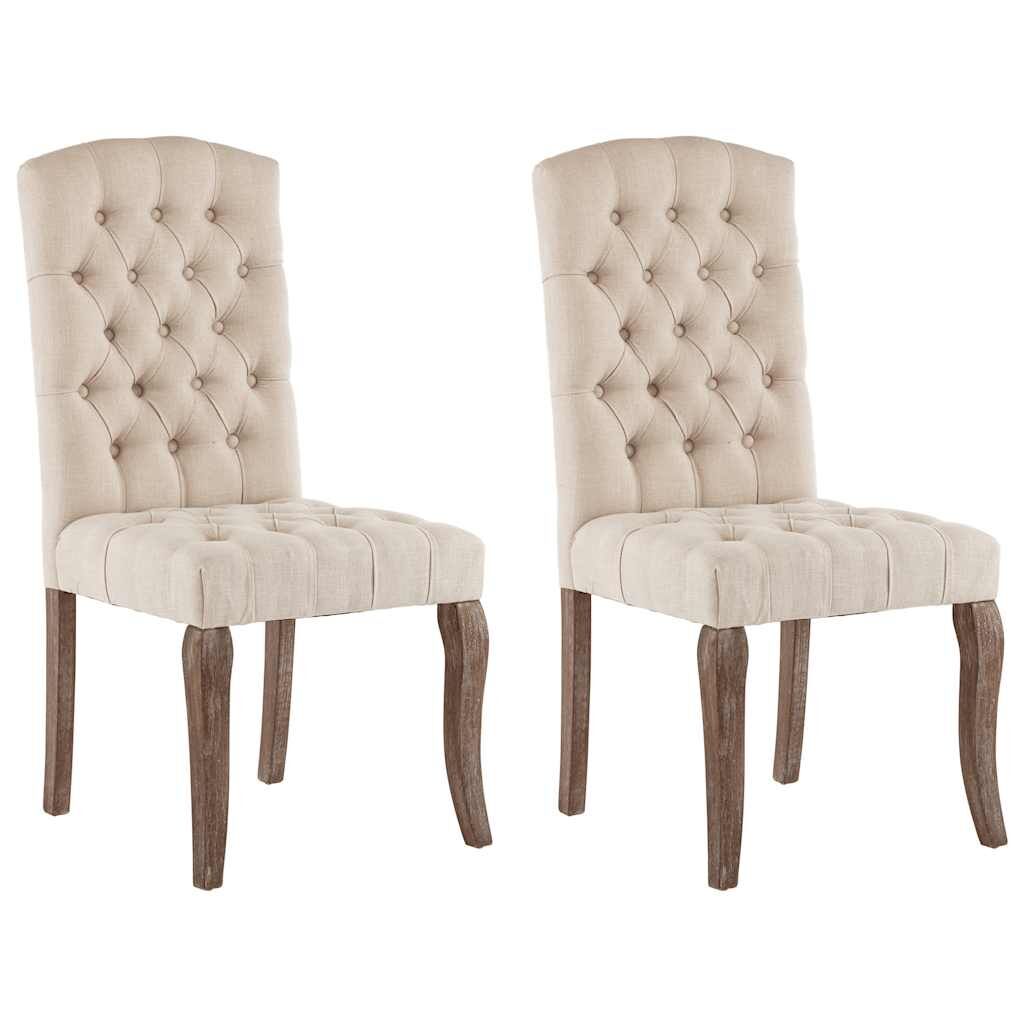 Our dining chairs with button design add a modern look to your dining room and any other rooms. The dining room chairs are upholstered in linen-look fabric, making it strong and durable. Thanks to the soft seat and high backrest, our dining chair set indeed brings you optimal seating comfort. Additionally, the rubberwood legs add super stability to the chairs, ensuring excellent durability. Delivery includes 2 dining chairs.