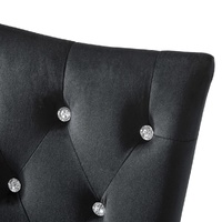 Give your interior decor an air of elegance with our velvet dining chair set. The chairs have been button-tufted with crystals, which gives them a glamorous look. The chairs have a sturdy, solid wooden frame and are upholstered in a high-quality velvet fabric that is soft and durable. Thanks to their thickly-padded seats and backrests, these dining chairs are highly comfortable. Assembly is easy. Delivery includes 6 dining chairs.