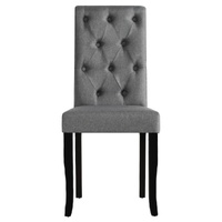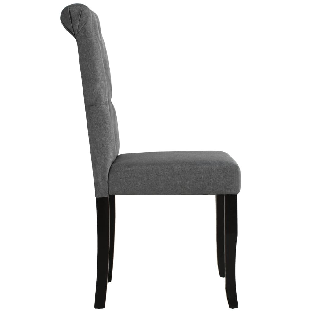 Our set of solid wood dining chairs, with an elegant and timeless design, will make a great addition to your kitchen or dining room. Thanks to the soft-to-the-touch fabric upholstery and foam filling, the chairs are very comfortable. The decorative buttons on the backrest add a nice classic detail to the design. Delivery includes 6 dining chairs. Assembly is easy.
