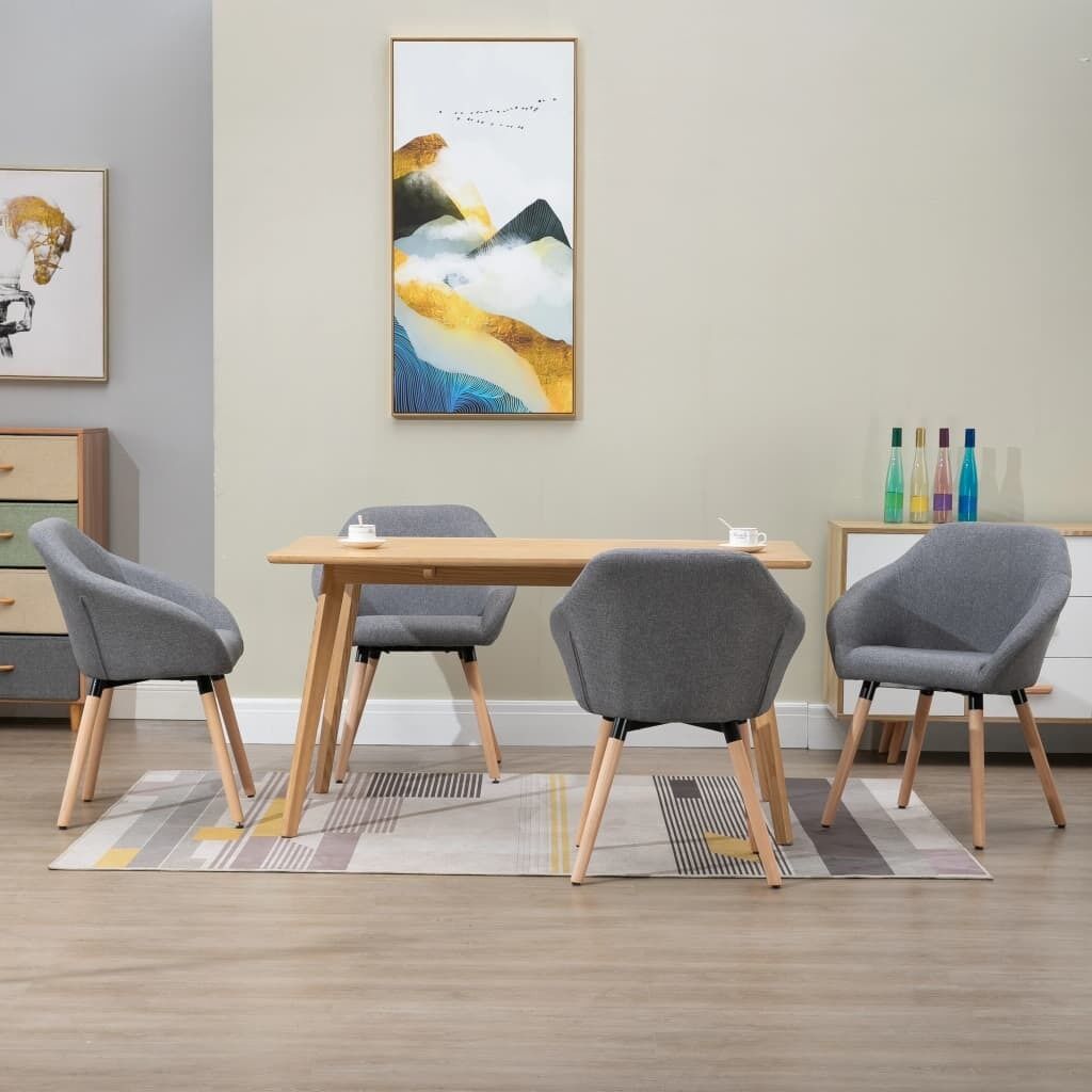 $414.53Made from quality fabric, this set of 4 dining chairs is aesthetically and ergonomically designed to make a cosy highlight in your home. It provides a comfortable place for your family to have dinner in the dining room or read and rest in the living room. Thanks to the thickly foam padded seat, armrests and backrest, our chairs will surely bring you optimal seating comfort. Additionally, the black metal and solid wood legs bring super stability and ensure the chairs excellent durability. Delivery includes 4 dining chairs.
