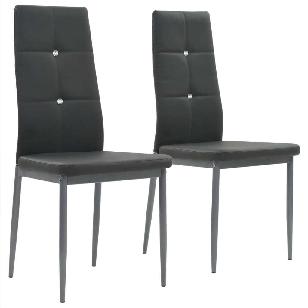 $124.07These high-quality dining chairs have a chic and elegant design, and will add a modern touch to your decor. The chair has a wooden frame with steel legs and a padded seat covered in artificial leather. The ergonomically shaped backrest is decorated with a pair of crystals to give each chair its exquisite look. The chairs are easy to assemble. Delivery includes 2 dining chairs.