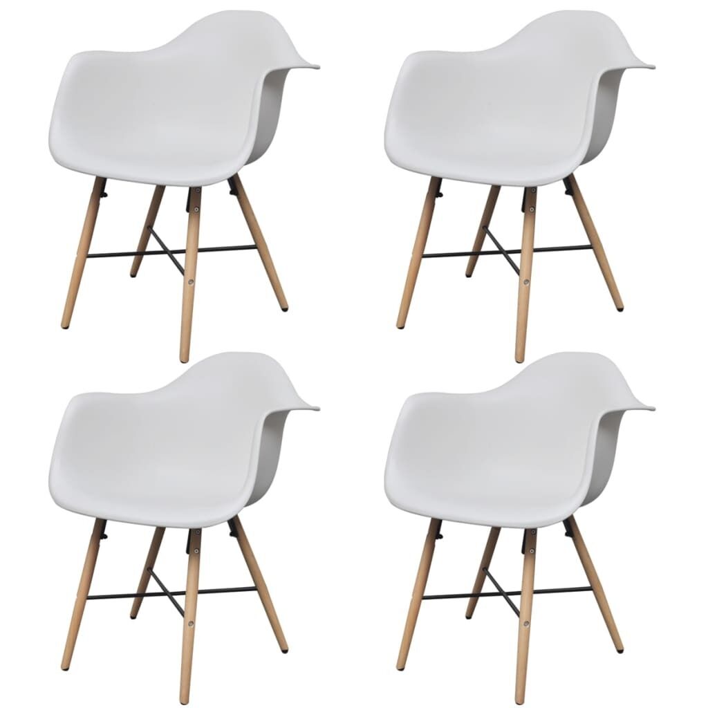 Our dining chairs with armrests have an elegant and timeless design, which will make them stand out in your kitchen or dining room. They are a joy to sit on while reading or enjoying Sunday lunch. Ergonomically shaped, these curved chairs are highly comfortable, and their stain-proof surface is easily wiped clean. Supported by the solid wooden legs, these attractive chairs are sturdy and durable. Assembly is quite easy. Delivery includes 4 dining chairs with armrests.
