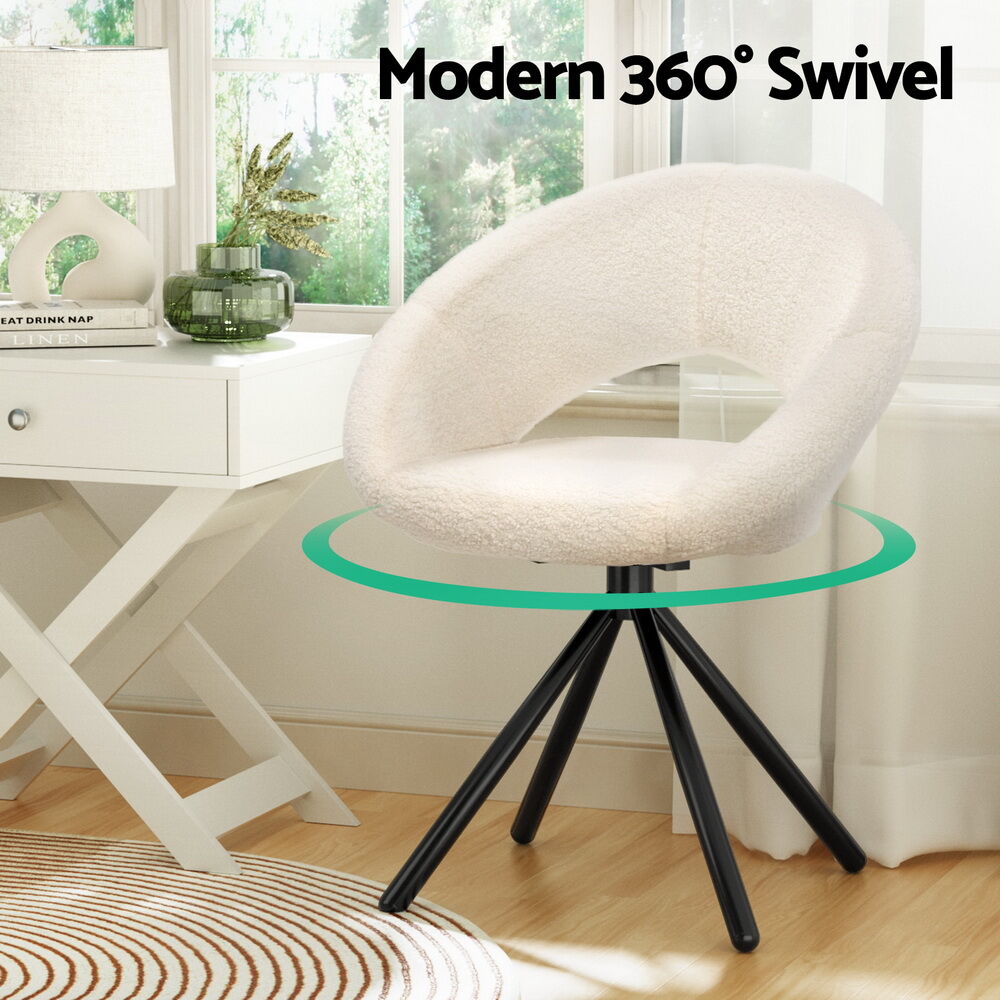$142.87Wine, dine, and entertain guests in comfort with our most eye-catching Artiss Vita Dining Chairs. Not just for your dining room, these dining chairs are sure to make a statement in your study room, living room, and dressing room. Their versatility and ultra-modern design make them stand out. Incredibly stylish and sophisticated, our Artiss dining chairs feature inner solid construction with luxurious polyester sherpa upholstery that ensures lasting quality and ultimate comfort when seated. The dining chairs flaunt plush seats made with high-resilience foam that offer incredible comfort and support, while the 360-degree swivel base allows guests to follow every beat of conversation. Our dining chairs can hold up to 150kg weight, and their sturdy X-shaped steel legs make them incredibly reliable. Anti-slip floor protectors allow for ultimate stability and keep your floors scratch-free. Bring home our luxurious sherpa fabric upholstered Vita Dining Chairs without any hesitation. Super comfortable to relax on and with stylish, elegant, and contemporary good looks, they are a must-have piece of furniture for your home.