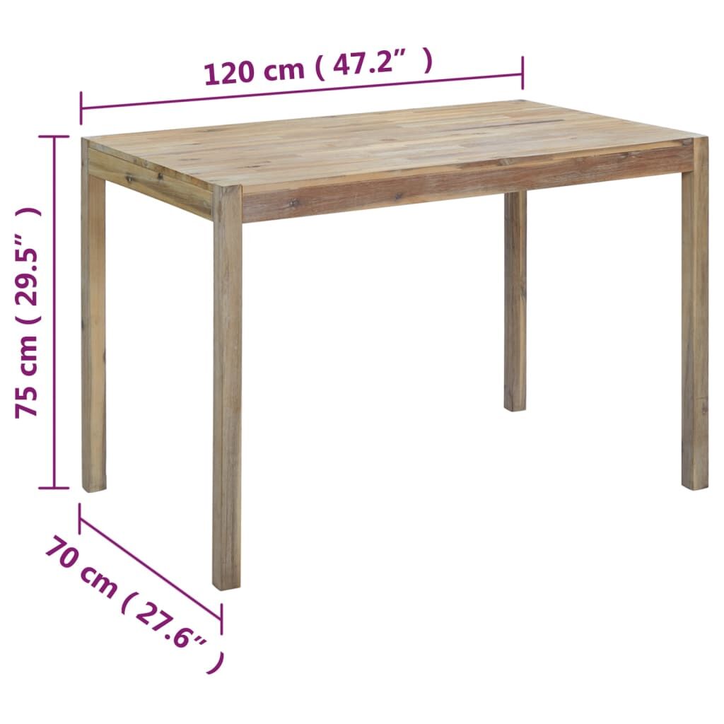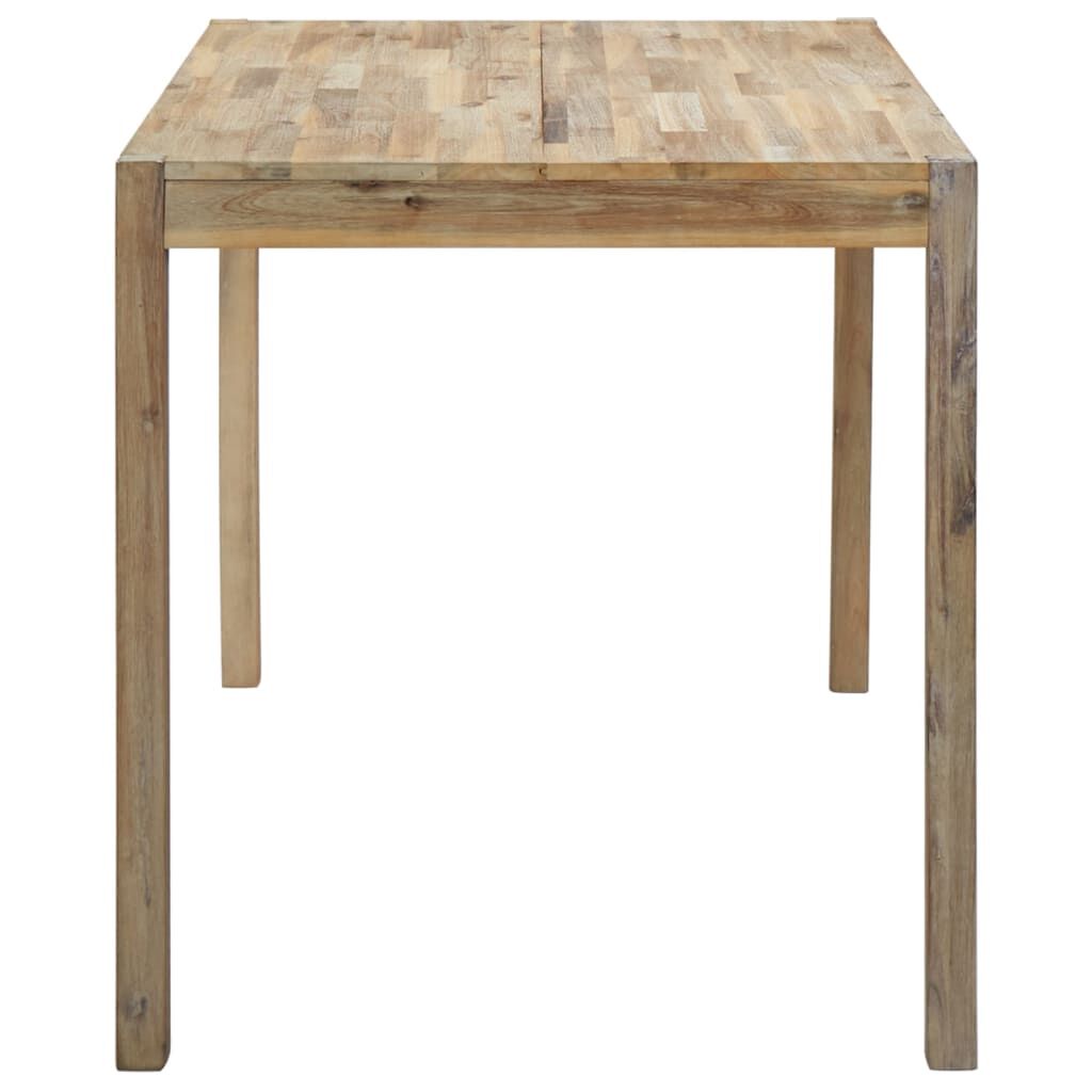 This elegant wooden dining table is sure to be an eye-catcher in your kitchen or dining room. The table is made of solid acacia wood which makes it sturdy and stable. The table is also easy to clean thanks to its brushed surface. This dining table is easy to assemble.