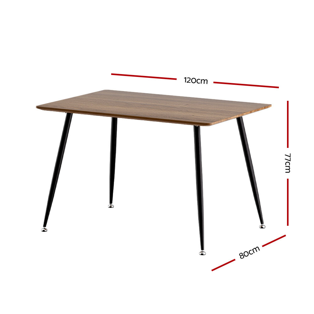 $132.53For a simple dining table that still delivers on style, the Artiss Caleb Dining Table is right for you. Made from thick particle board with a natural wood grain finish, the table is exceptionally affordable, durable, and will blend in perfectly with your existing décor. The dark wood tabletop is set atop solid powder-coated, anti-rust steel legs for an industrial-style look and feel. The table is scratch resistant and easy to clean and maintain thanks to the smooth, long-lasting surface. The table has a max capacity of 95kg and can comfortably seat four to six people, so you can entertain well into the night for any holiday or special occasion. The entire table is further reinforced with heavy-duty fixings and anti-slip feet that will keep the dining table in place and prevent damage to floors. Luxury dining has never been easier thanks to the Artiss Caleb Dining Table.