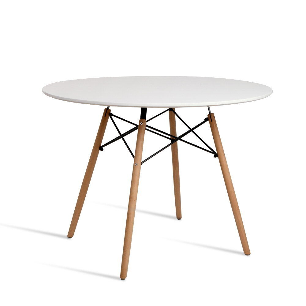 This Replica Dining Table makes for a perfect match with your furniture collection.Beautifully crafted with a reinforced 20mm thick MDF table top and gorgeous solid beech wood legs, the Dining Table stands strong and sturdy with a presence that blends perfectly with any décor. Excellent details include durable steel fixings, scratch-proof matt PU lacquer finish, recessed screw joints and anti-slip legs. Not least, its 100cm diameter is ample space to accommodate a setting for four easily.Create a style that speaks volumes for your dining area. Start with the Dining Table.