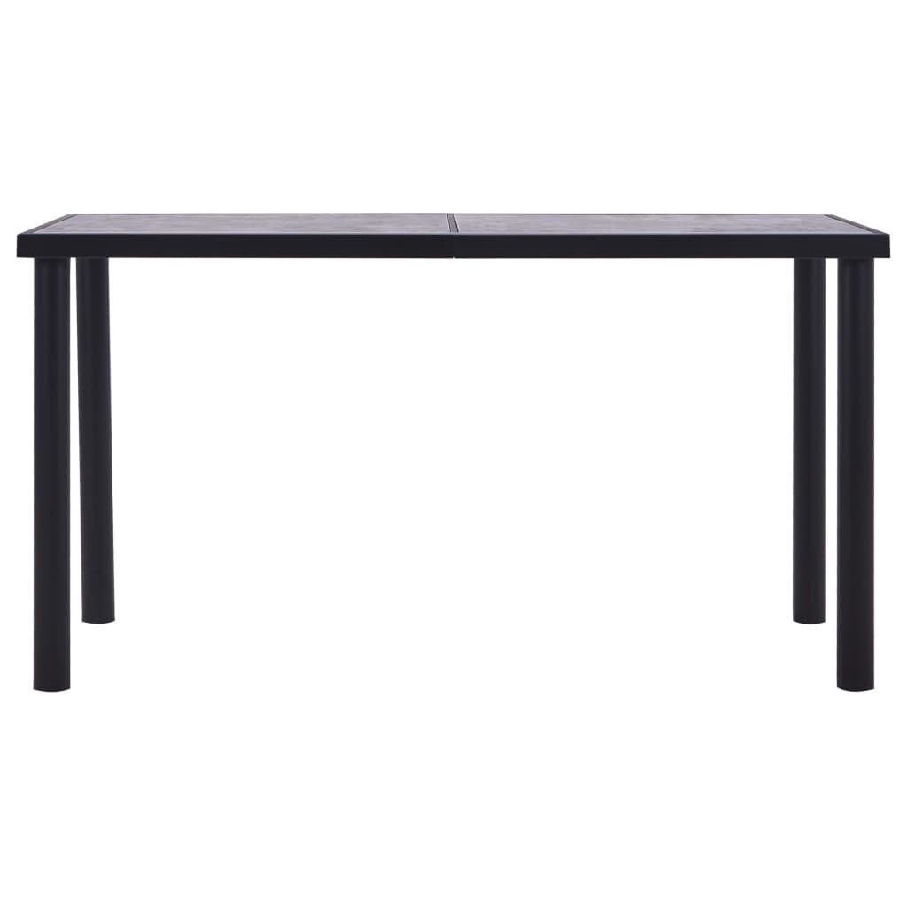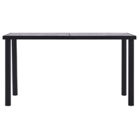This dining table, designed with clean and modern lines, will be a great choice for your kitchen, dining room or outdoor dining area. The dinner table has a smooth tabletop with wood grain that will add distinctive elegance to your meals. The powder-coated metal frame contributes to its solid construction, bringing great stability and durability. Additionally, the table is easy to assemble and clean with just a damp cloth.