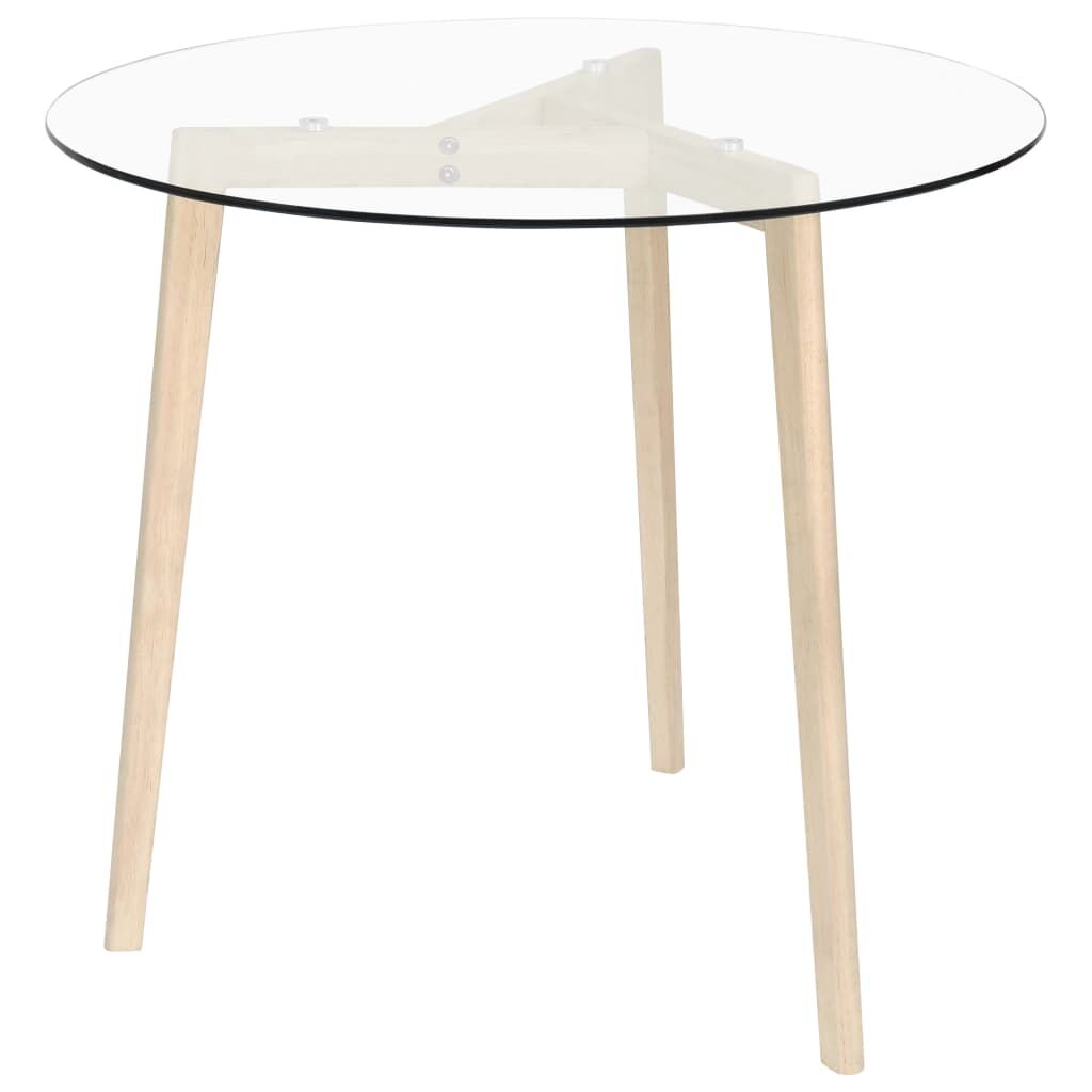 The trendy dining table with clean lines is an excellent choice for your dining room or kitchen. Its simple elegance makes everyday mealtime special. The dinner table features a smooth tempered glass tabletop that is easy to clean with a damp cloth. The solid oak wood legs add to its solid construction, bringing great stability and durability.