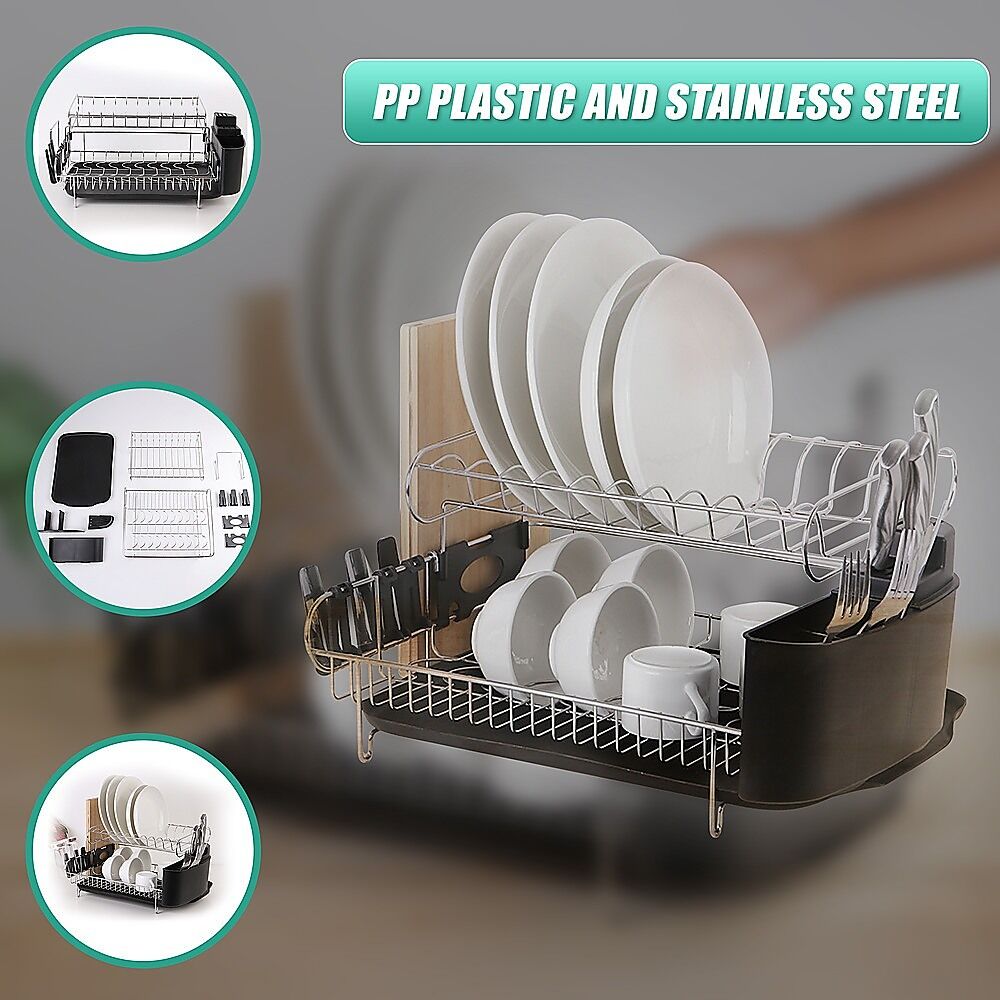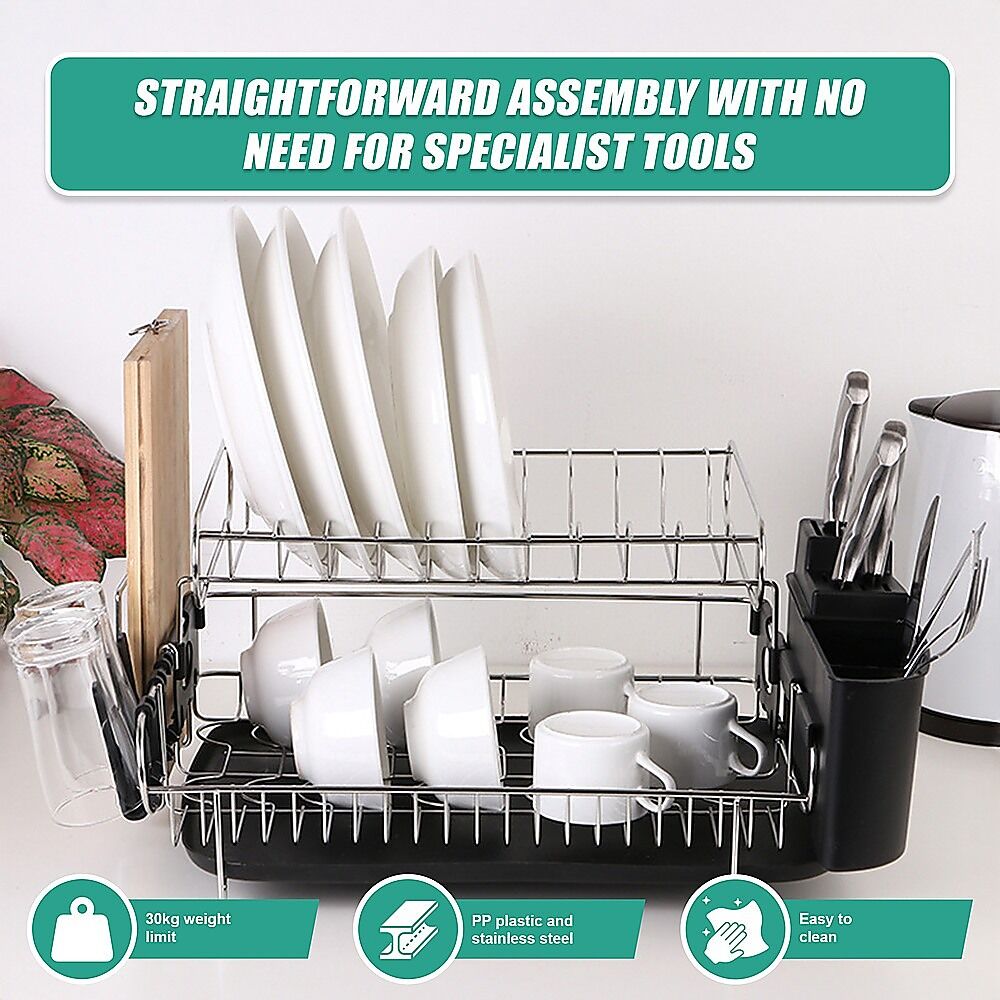 The stainless steel/plastic construction results in a durable product that's resistant to water damage. Built to last, the drainer can be used for temporary dish storage or as a permanent home for crockery in a kitchen where cupboard space is limited.