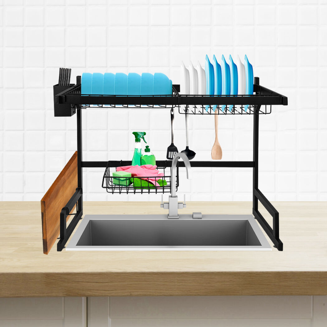 Made from premium quality stainless steel. The steel is provided with a black coated finish for added durability and stability. It is highly resistant towards rusting, use it without a worry underwater. Designed to withstand wear and tear effects. It is provided with an innovative L-shaped stand, stays stable and firm in its place, does not easily move from its place. For a strong fix to the kitchen floor, anti-slip bottom suction feet are provided. Stays in its place for longer and stronger. Ample space to store all your dishes and cutlery, built with unique 2 tier construction. Store all your kitchen essentials in one place. Assemble it with ease with simple instruction.