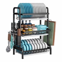 Dish Rack 3 Tier Dish Dryer Drainer Stainless Steel Dish Drying Rack Drip Trays Side Holder Kitchen Storage Save Space
