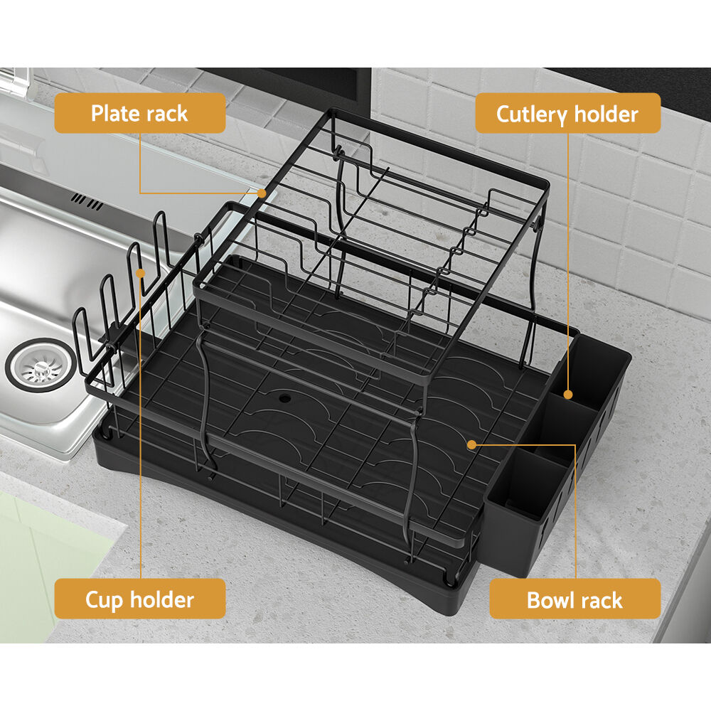 Keep your dishes clean, clear and fresh with the Cefito Dish Rack. The all-in-one two-tier dish rack has a detachable and removable design so you can customize your rack to the perfect configuration for your kitchen. Set on a stable stainless-steel frame with a mesh base, the rack can hold all of your cutting boards, cups, plates, cutlery and more. A drainage pipe in the base allows for proper ventilation and quick drying of all your pieces, while cutlery dividers allow you to dry your cutlery separately. Best of all, the stylish design won't be an eyesore in your modern home. Easy to clean and maintain, the Cefito Dish Rack will make light work of your dishes.