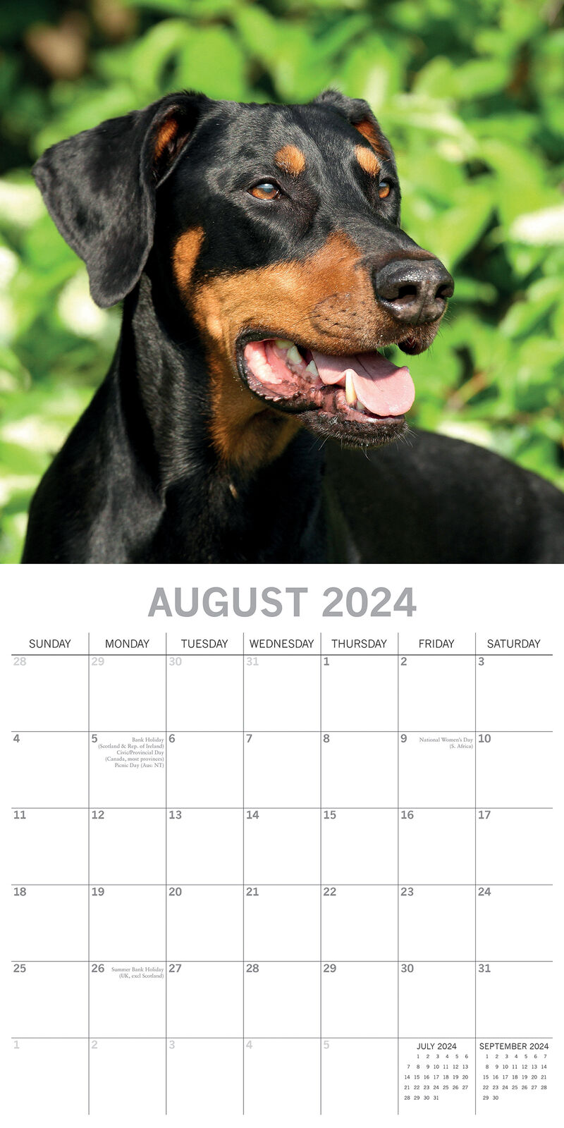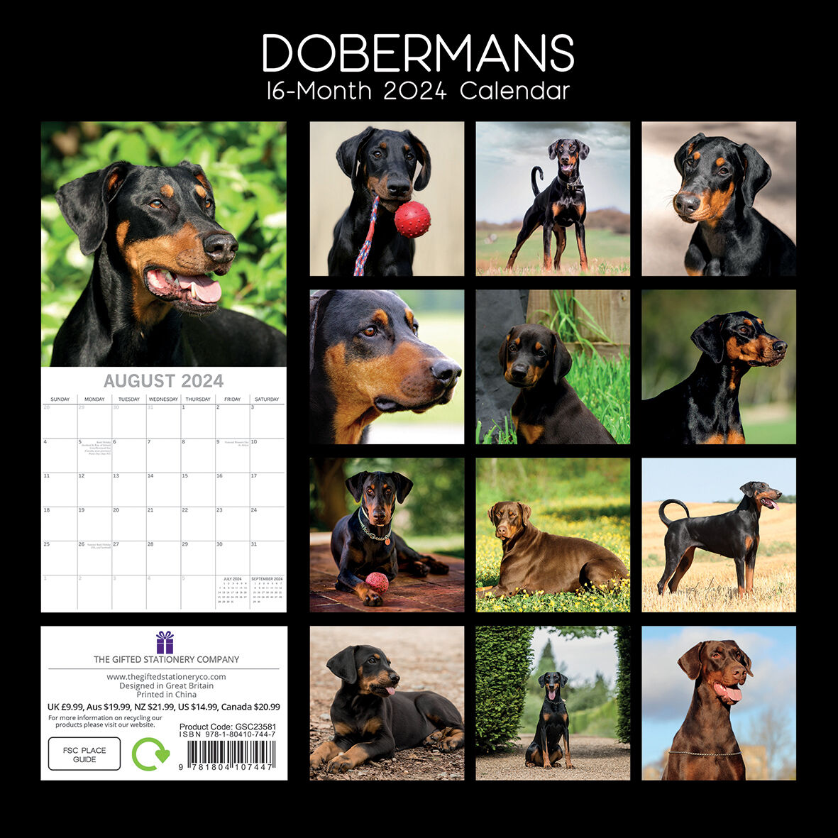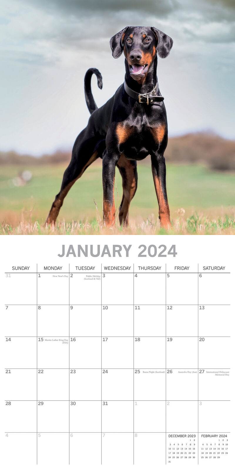 Strong and faithful, a Doberman Pinscher is a devoted companion. This very intelligent and self-confident dog was originally bred in Germany by Louis Dobermann, a tax collector who, not surprisingly, desired a brave guardian to accompany him in his travels through hostile neighborhoods. The elegant Dobies in this magnificent square wall calendar will fearlessly protect their owners. Brand New Calendar with Beautifully design, Sealed in Original Packaging, each calendar includes a large grid running from Sunday to Saturday. Publisher: The Gifted Stationery Co. Dimensions: 30cm (w) x 30cm (h) closed; 30cm (w) x 60cm (h) opened Time Span: 16 months (January to December 2024 monthly, September to December 2023 on-a-page) 2024 Square Wall Calendar featuring beautiful colour photographed images for every month of the year. Like most Wall calendars, this one comes with: