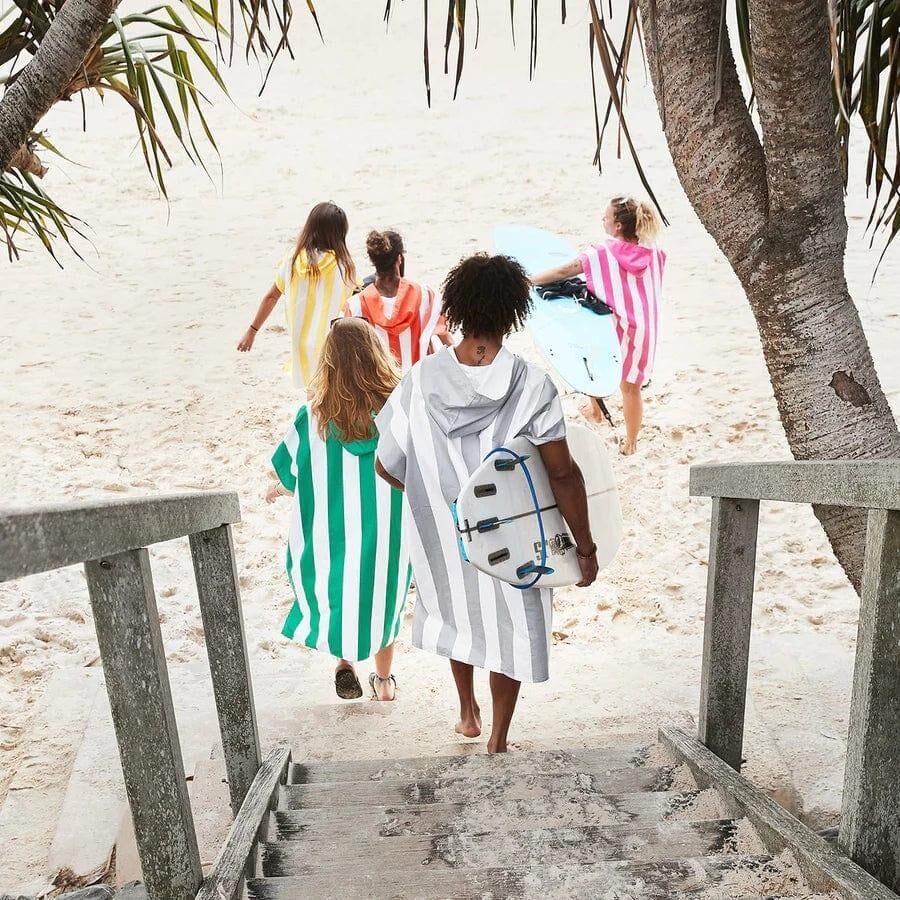 NOW $52.63Be seen in stripes with an eye catching solution to getting dry in public places. This quick-dry poncho is perfect for any beach day, providing dryness and warmth between dips, and also makes a perfect cover to change in and out of your swimmers.