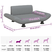 Give your furry friend a warm and comfortable place to relax with this dog bed! Comfortable and soft material: The pet sofa is padded with thick and soft foam and covered with fabric, providing enough support and superior comfort for your lovely pet to rest on it.Sturdy and durable frame: The solid pine wood frame ensures sturdiness and durability of the dog sofa. The four chromed steel feet also add extra stability.Stylish design: This dog couch matches perfectly with any decor theme and is a great addition to your living room or bedroom. Note:Please measure the body length of your pet before purchasing.