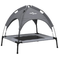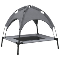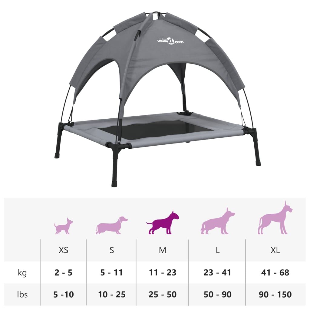 This dog bed with canopy is a comfortable and practical sleeping solution for your furry friend. Long-lasting and breathable material: The elevated dog bed is made of Oxford fabric and textilene, making it durable and suitable for daily outdoor use.Sturdy and stable frame: The powder-coated steel frame ensures the sturdiness and durability of the raised dog bed. The four non-slip rubber feet also add extra stability.Removable canopy: The dog couch bed comes with a removable canopy for full shade and protection.Elevated design: The dog bed keeps your dog out of dirt and moisture, providing a comfortable, dry sleeping surface.Wide applications: The dog bed cot is suitable for both indoor and outdoor use. It can be placed anywhere in the home, as well as on your porch, patio, or backyard.
