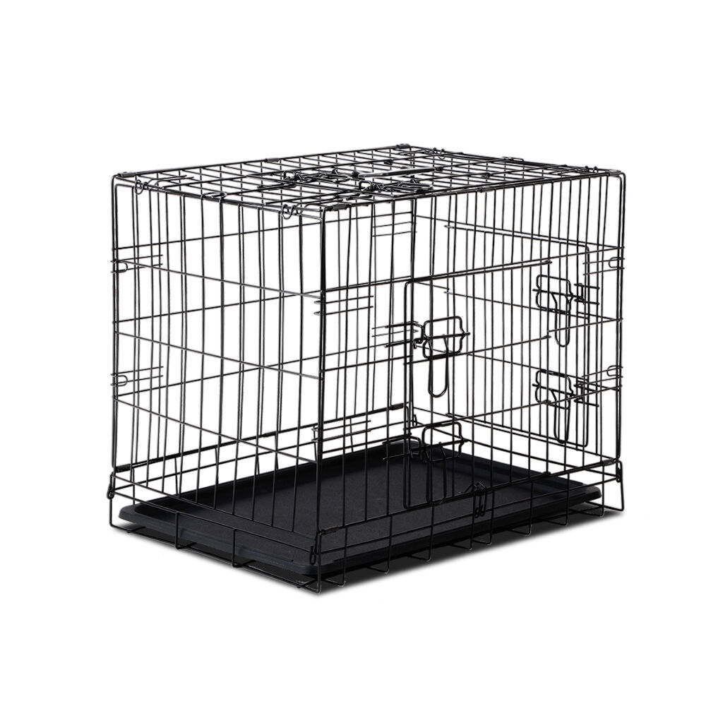 Featuring a foldable design with triple access doors, this dog cage offers maximum convenience and is extremely safe for containing your pets. It's metal constructed with a powder coated finish enhancing durability and is also rust resistant. Easy to setup, store, transport and clean, an absolute hassle free purchase! Great for securely keeping your pets contained, a must have for every pet owner.